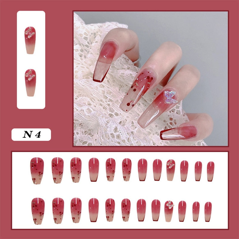 Looks cute on my nails. I had to adjust them according to my nail sizes. The glue fixed them tightly to the nail so far( the second day yet). I applied some top coat for extra shine.