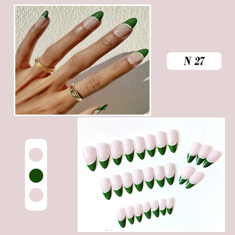 24pcs false nails matte Green Nails Patch with glue Removable Long Paragraph Fashion Manicure press on Nail tips free shipping-Nail Inspo