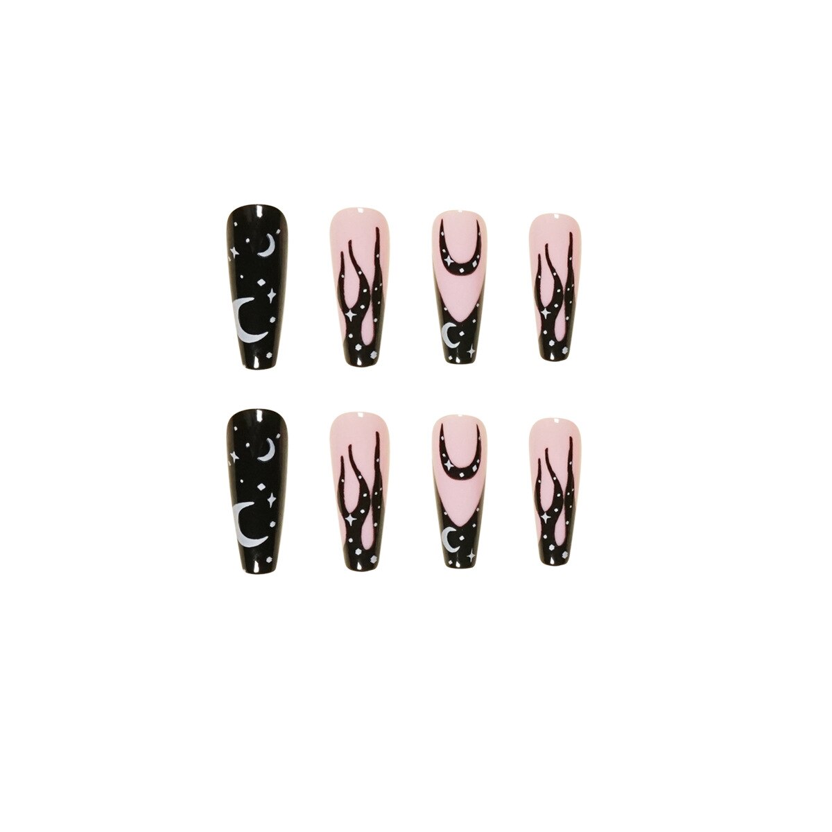 24pcs False Nails Star Moon Printed Nail Patch Removable long Coffin Ballerina Manicure Nail Art Fake Nail Patch Press On Nails-Nail Inspo
