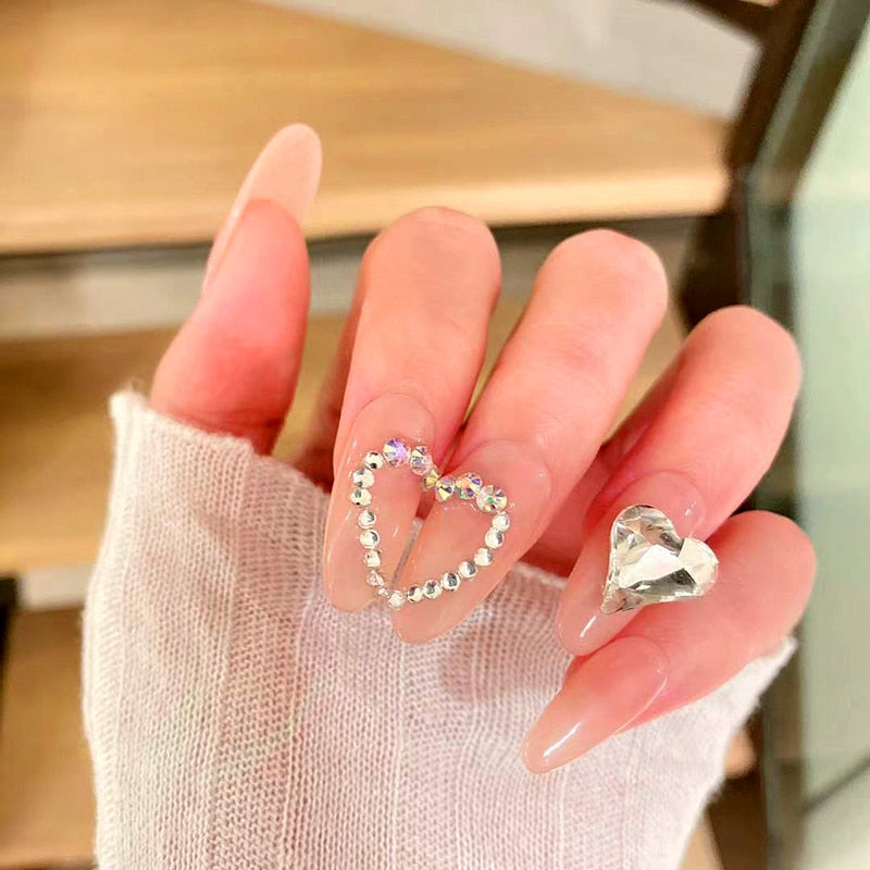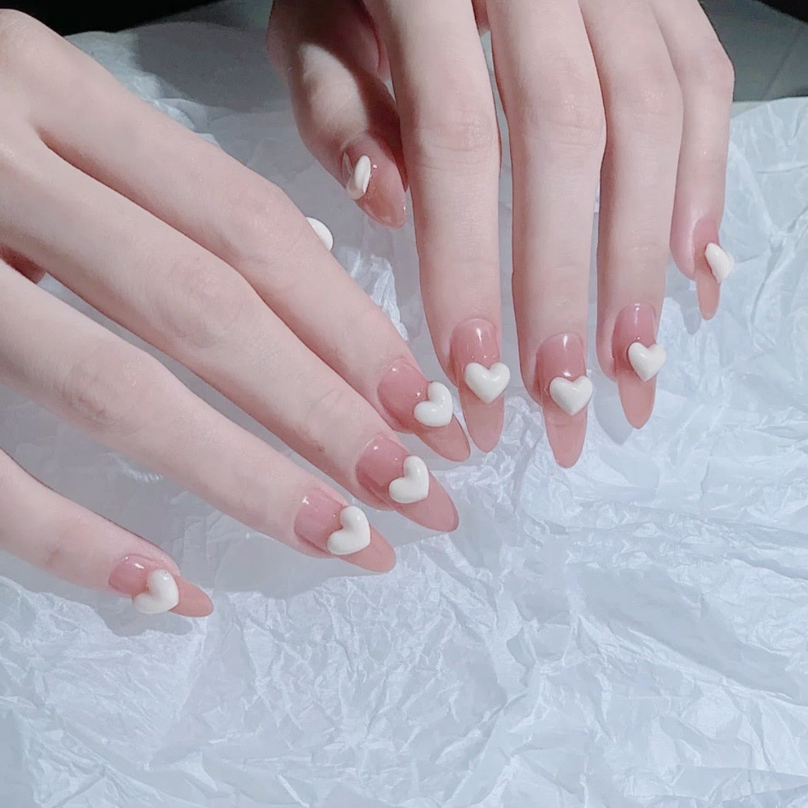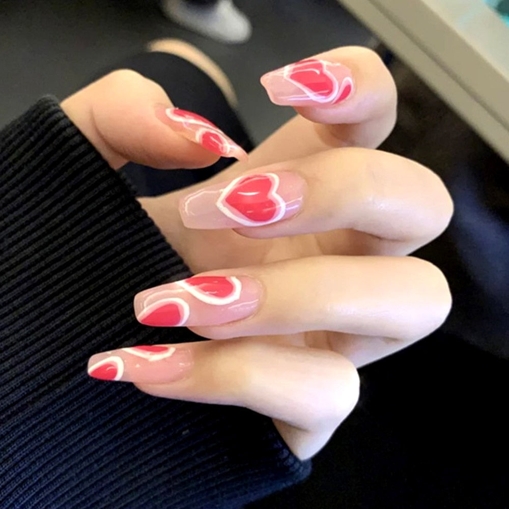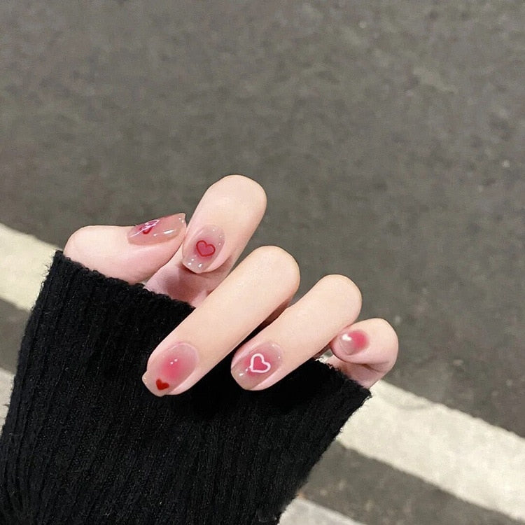 24pcs False press-on nails with a pattern Peach heart wear finished tablet nail art  removable Manicure beautiful false nails-Nail Inspo