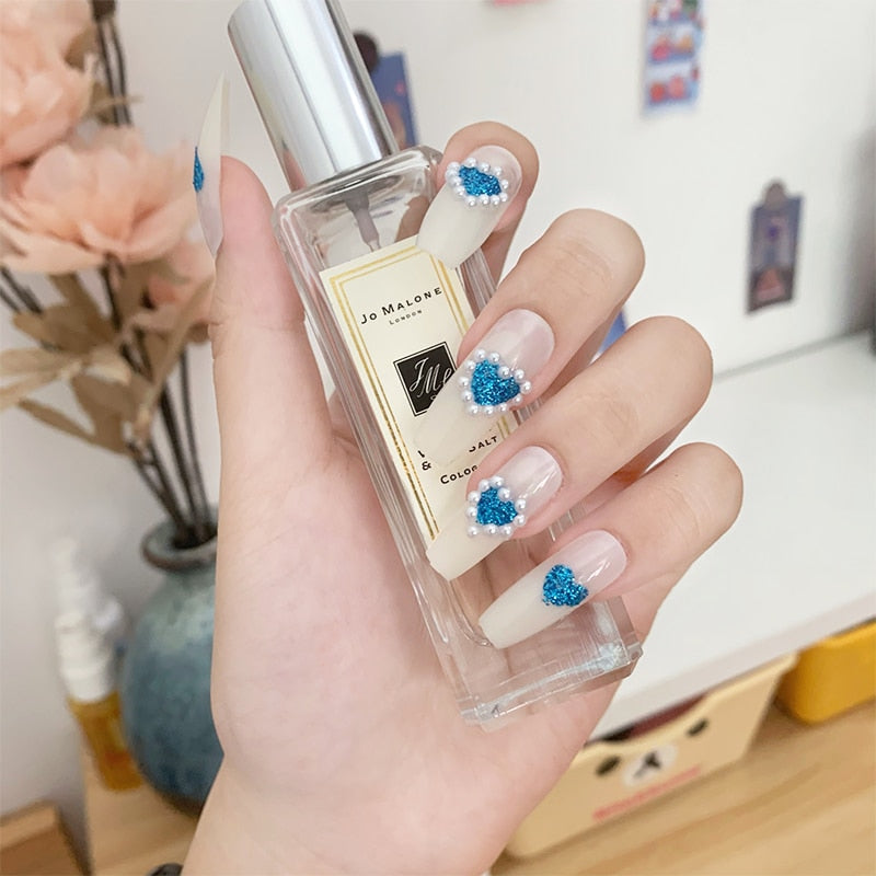 - Choose a suitable size of adhesive stickers or nail glue for your nails and stick it on your nails.
