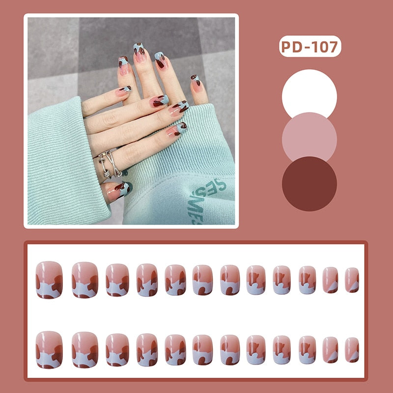- Choose a suitable size of adhesive stickers or nail glue for your nails and stick it on your nails.