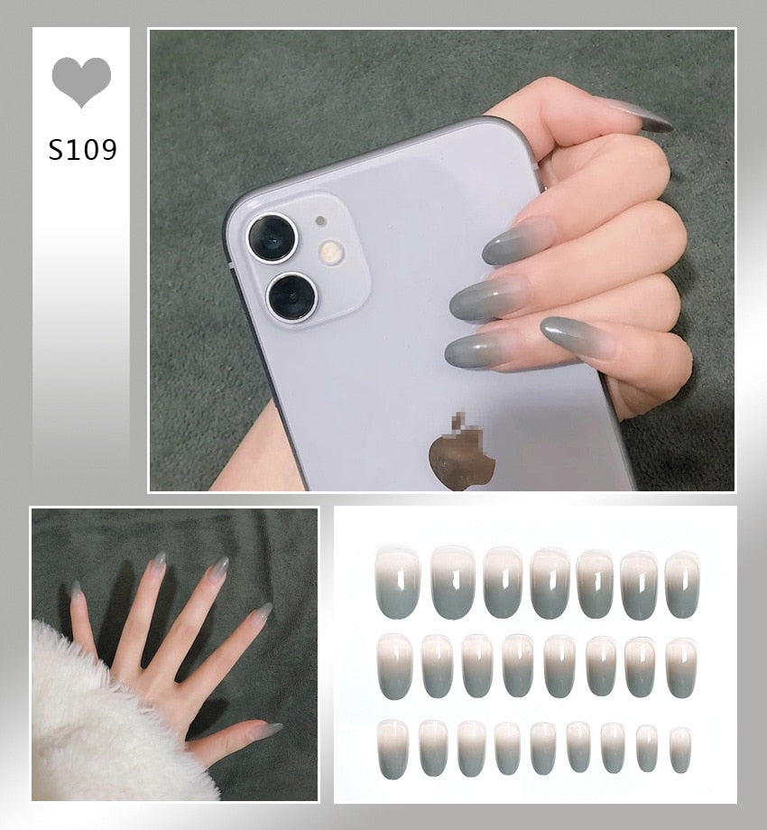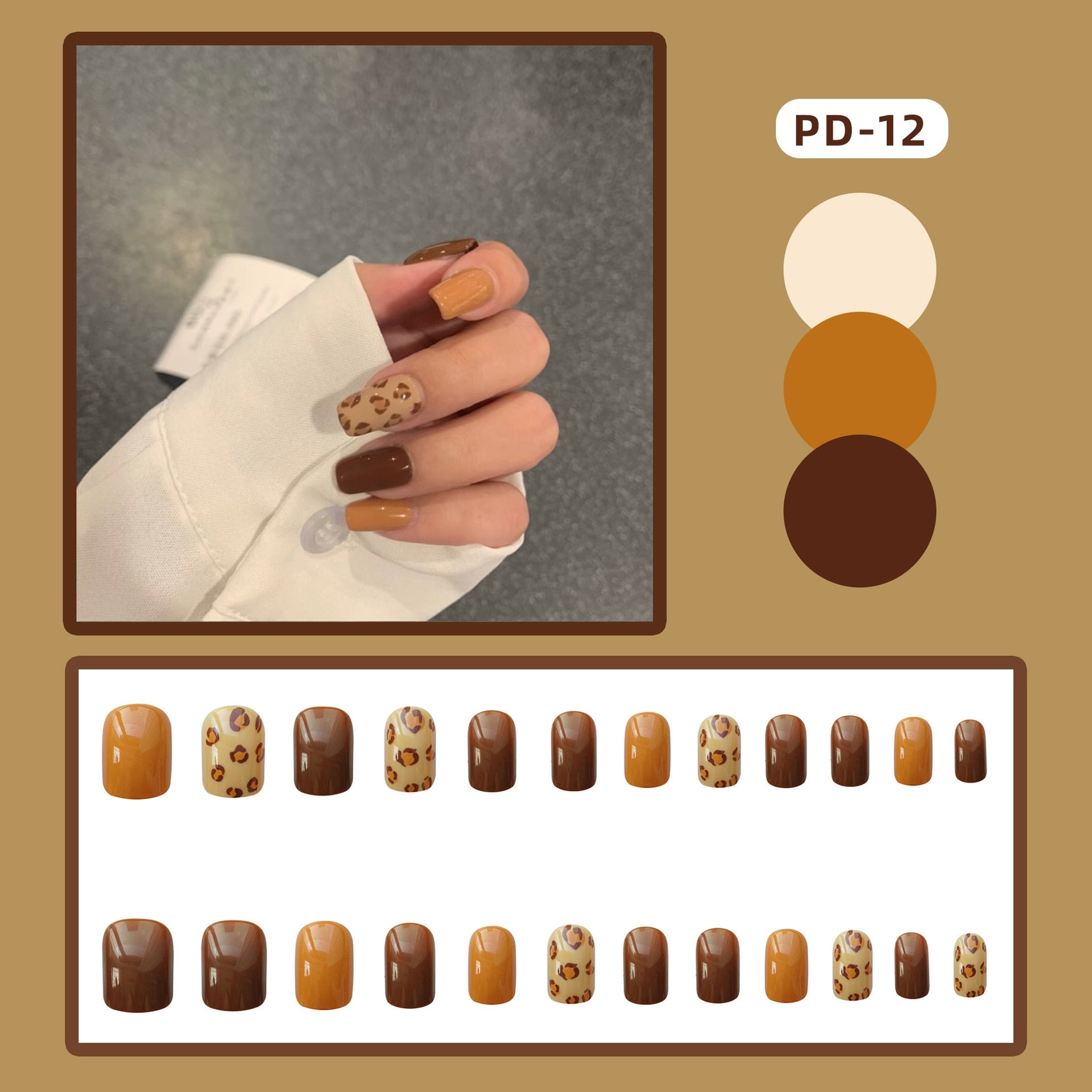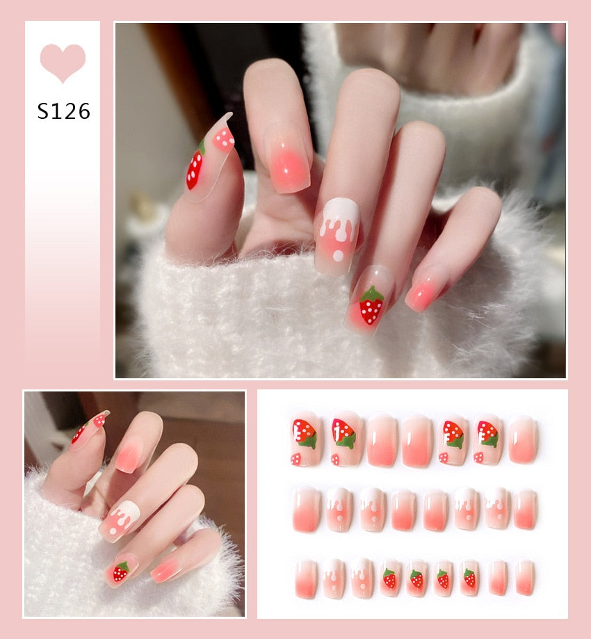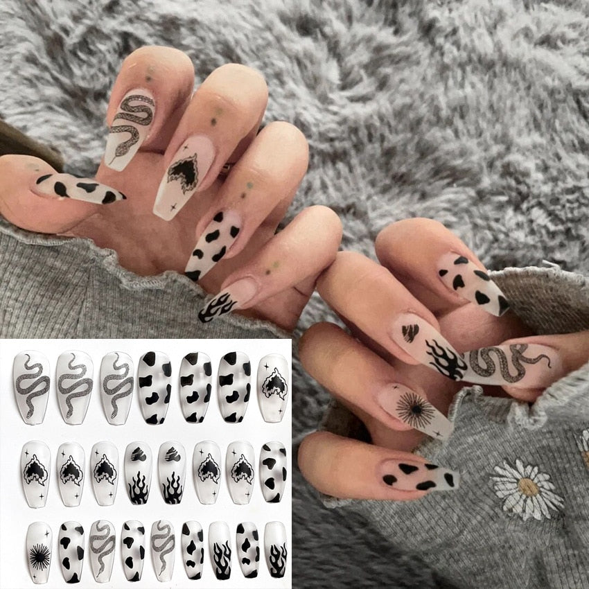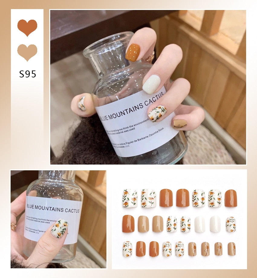 24pcs Full Cover Fake Nails Art Tools Matte Press on Coffin French Acrylic False Nail Tips With Glue Display Artificial Designs-Nail Inspo