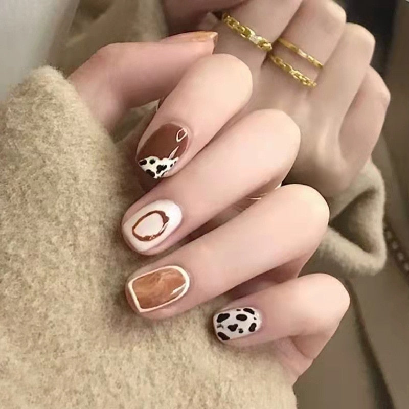 Looks cute on my nails. I had to adjust them according to my nail sizes. The glue fixed them tightly to the nail so far( the second day yet). I applied some top coat for extra shine.