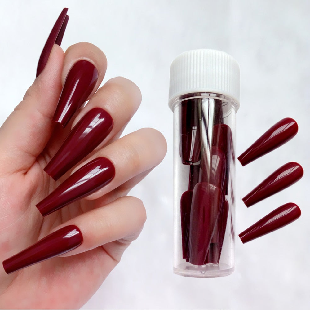 24Pcs Glossy Dark Brown Artificial Press On Nails Super Long Ballerina Coffin False Fingernails Tips Full Cover Manicure Tool-Nail Inspo