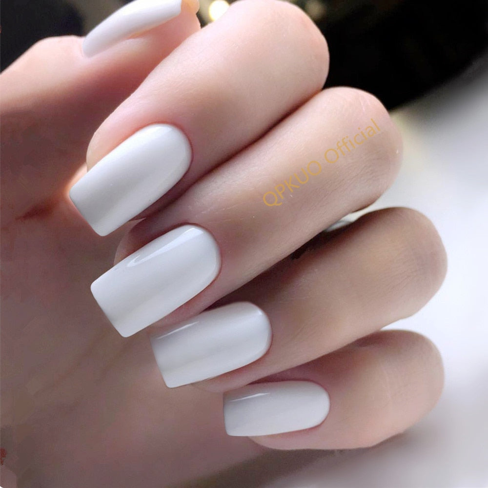 24Pcs Glossy Natural Press On Fake Nails Artificial Flat Long False Nails For Design DIY Full Cover Tips Manicure Tool-Nail Inspo