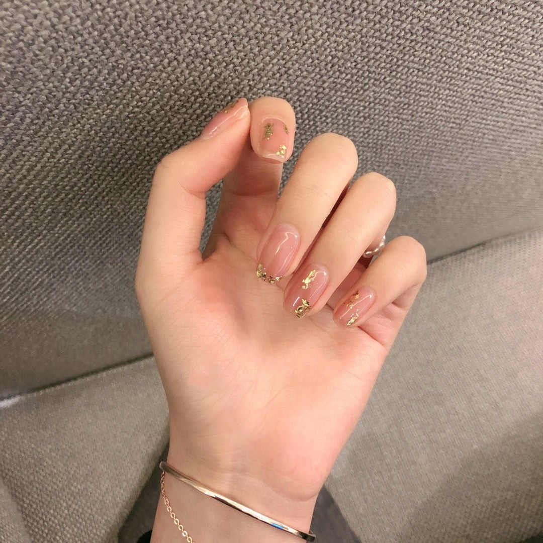 24pcs Gold Fake Nails Full cover Fake Nails Glue DIY Manicure Nail Art Tools-Nail Inspo