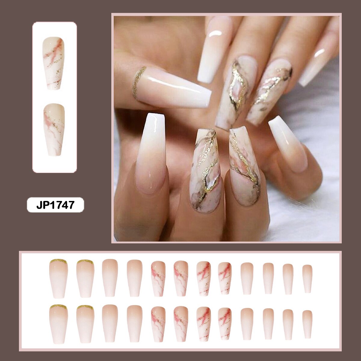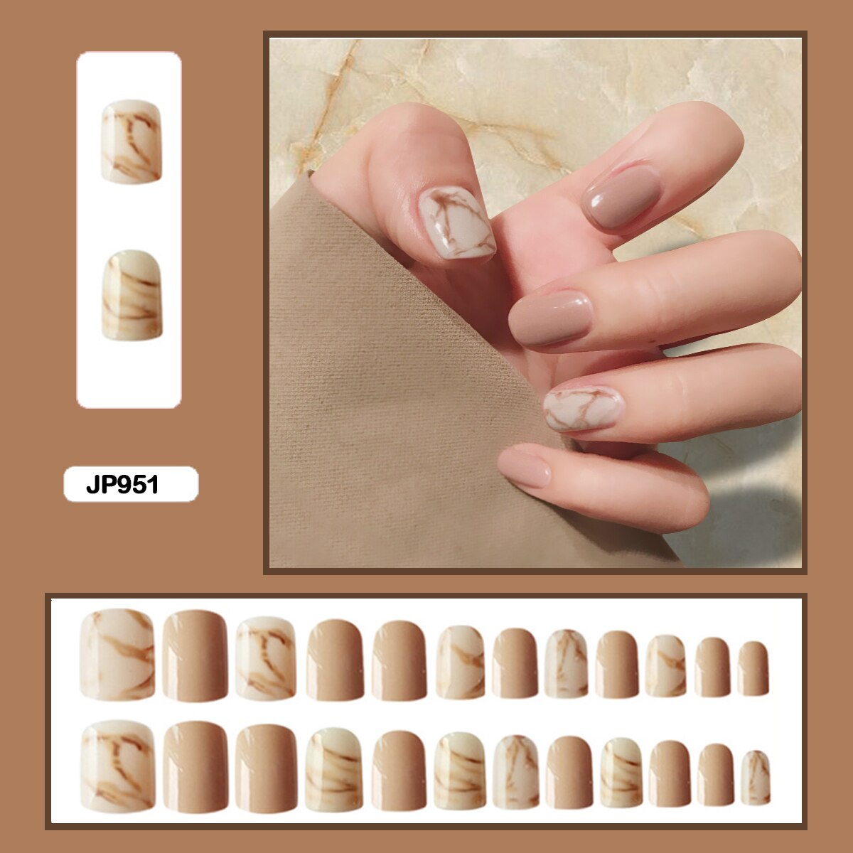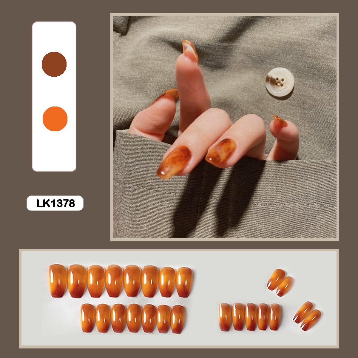 24pcs Gradient Amber Marble Texture Nails Art Long Trapezoid False Nails Wearable Fake Nails With Glue And Wearing Tools-Nail Inspo