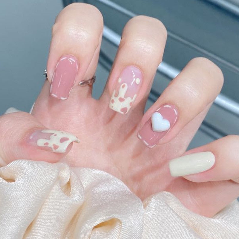 Looks cute on my nails. I had to adjust them according to my nail sizes. The glue fixed them tightly to the nail so far( the second day yet). I applied some top coat for extra shine.