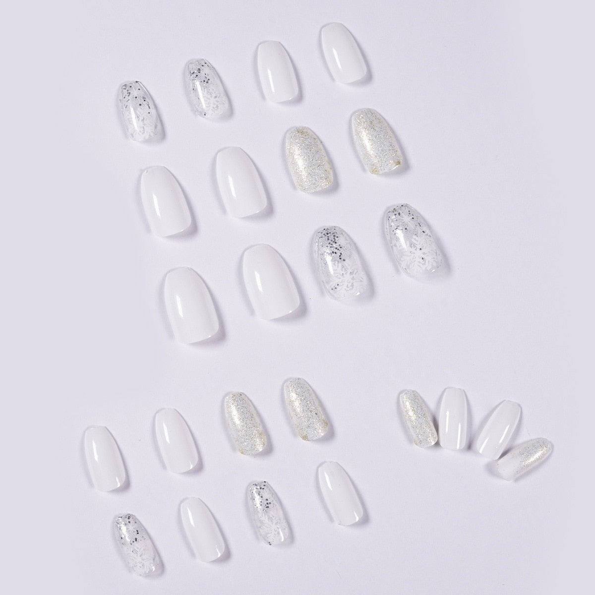 24pcs Ice and Snow Glitter Short Ballet False Nail Wearing Nail Finished Fake Nail Nail Patch Press On Nails Full Cover Nail Tip-Nail Inspo