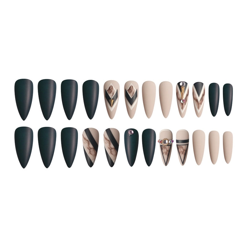 24pcs Khaki Dye Matte Frosted Fake Nails stiletto Dark Blue Color Pointed Head Long Style Wearable ABS Resin Finished Fingernail-Nail Inspo