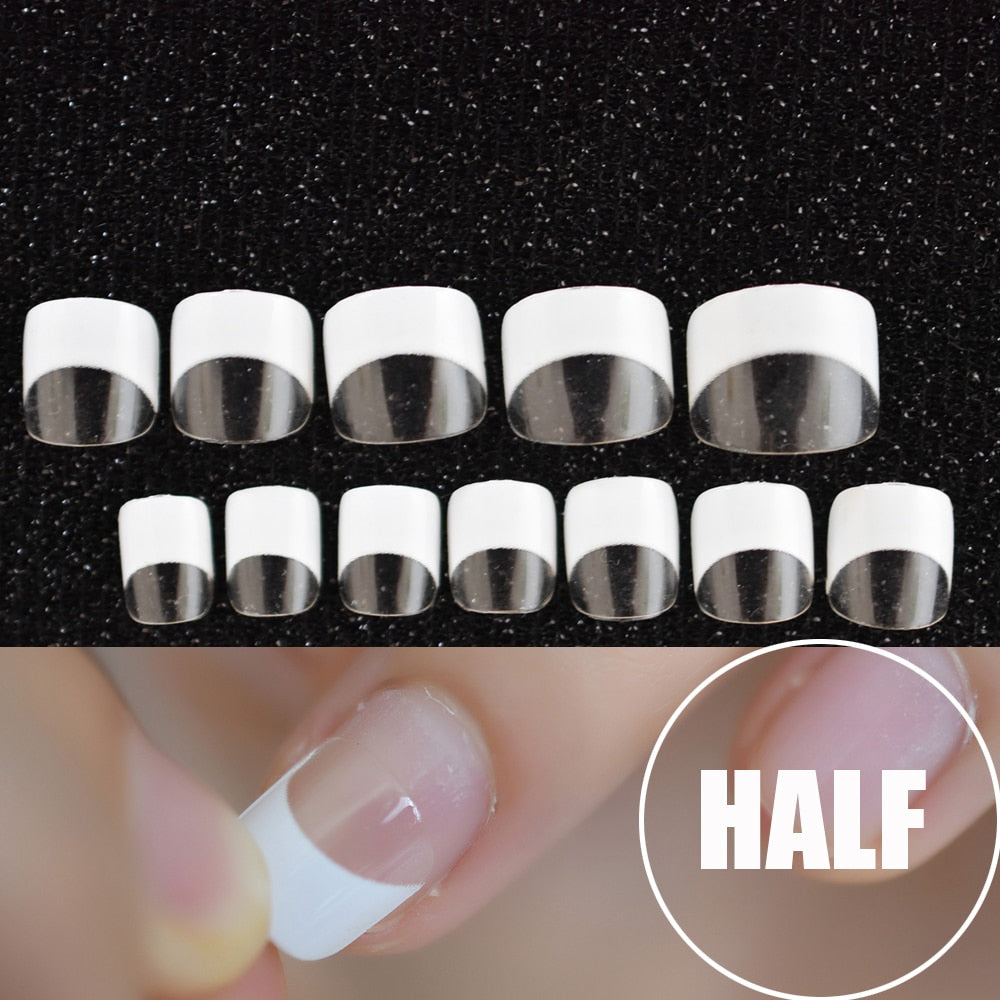 24pcs/kit White French Manicure Half Nail Tips Transparent Square French Nails DIY Nail extension Tip-Nail Inspo