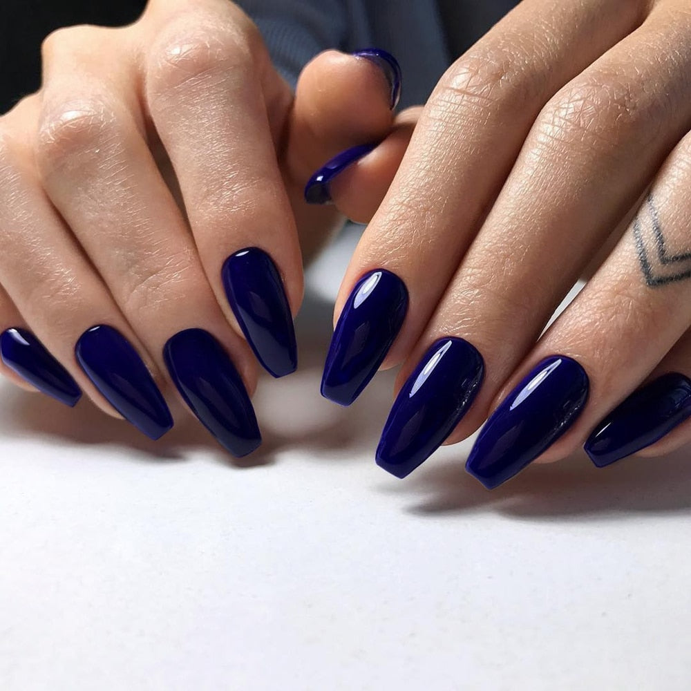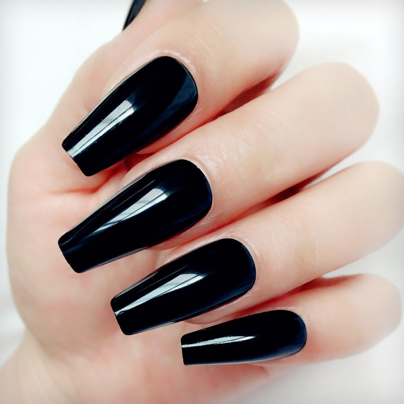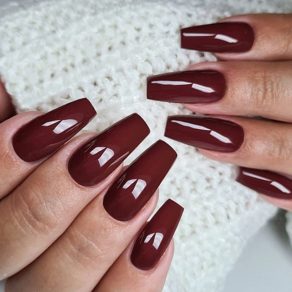24Pcs Long Ballerina Coffin False Nails Glossy Dark Brown Artificial Fake Nail For Design DIY Lady Figner Tip Manicure Tool-Nail Inspo