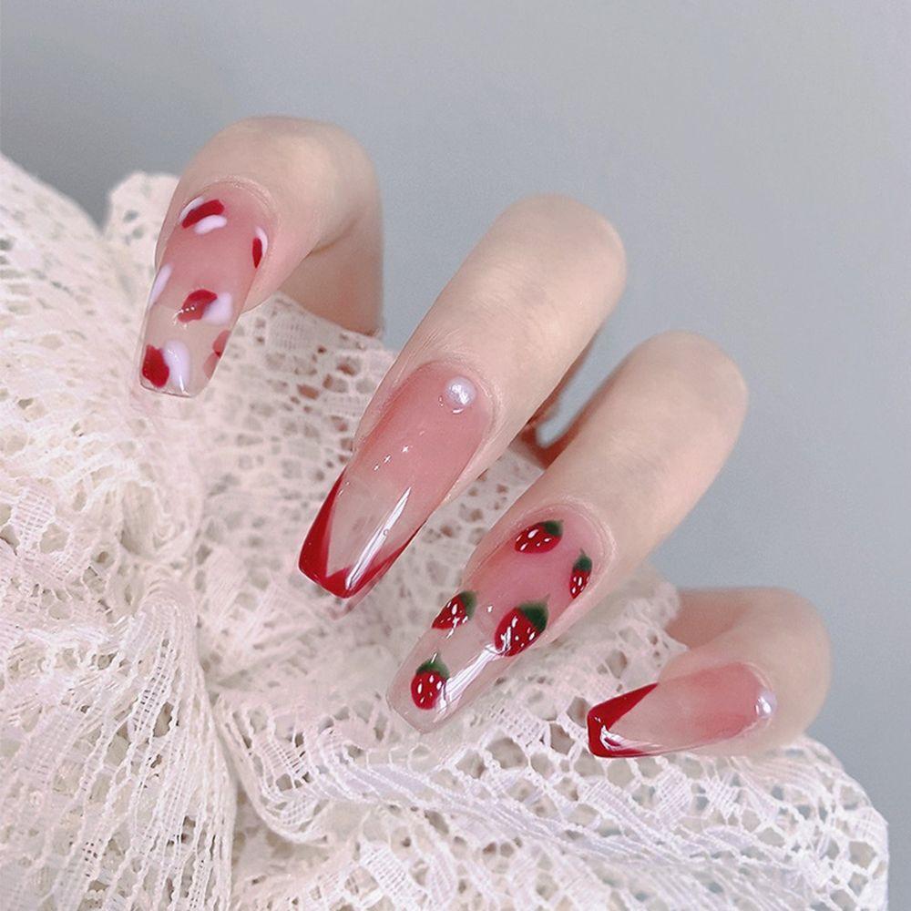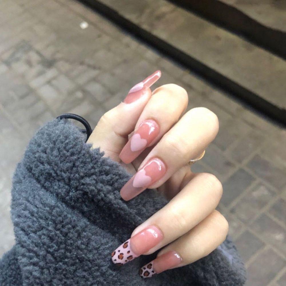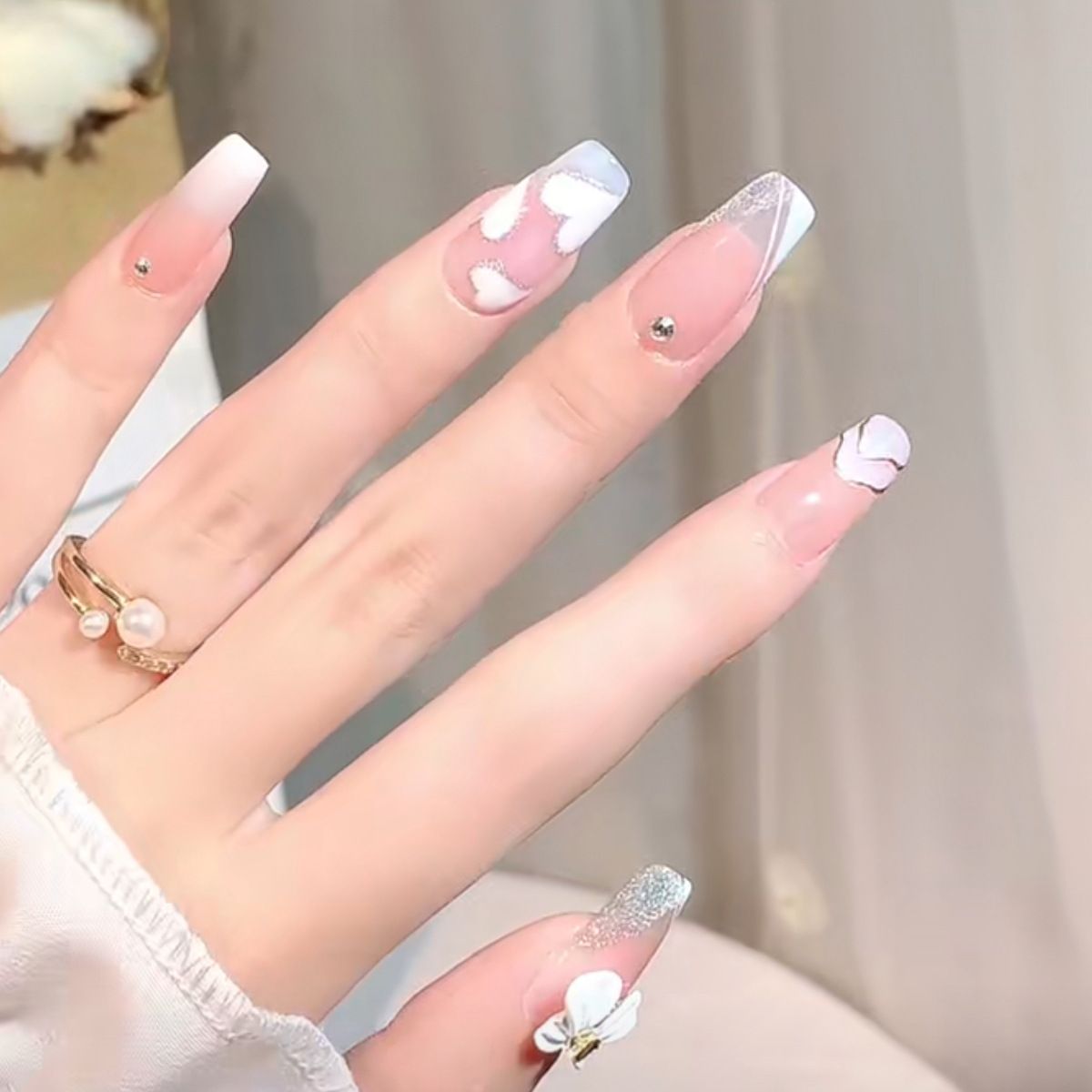 24Pcs Long Ballerina False Nail Love Pattern French Coffin Fake Nails Full Cover Wearable DIY Manicure Tools Press On Nails 1029-Nail Inspo