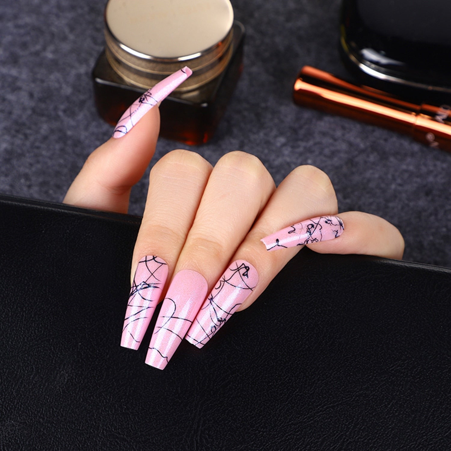 24Pcs Long Colorful Detachable Coffin False Nails Artificial Ballerina Fake Nails Press On Nail Tips Decor Acrylic Fingernail-Nail Inspo