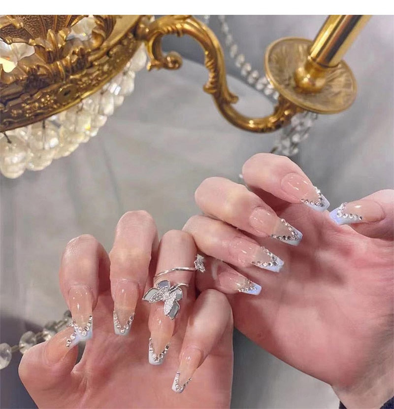 - Choose a suitable size of adhesive stickers or nail glue for your nails and stick it on your nails.
