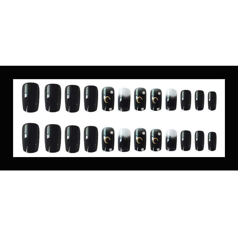 24pcs Long Square Black Fake Nails Star Moon Design Press On False Nails Graffiti Style Korean Manicure Removable Glue Nail Art-Nail Inspo