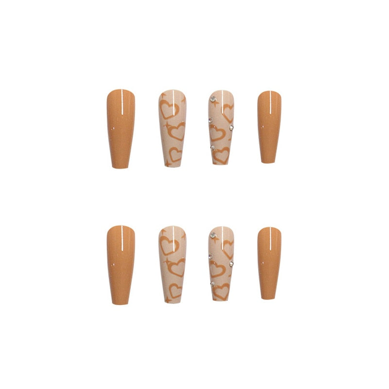 24pcs Love Heart Printed Nail Patch Rhinestone Decor Ballerina Fake Nails Press on Nails Wearable False Nail Tips With Glue-Nail Inspo