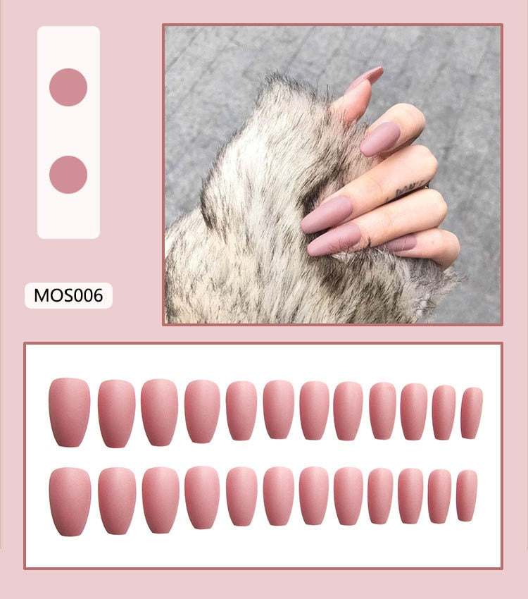24pcs Matte Solid Color False Nail Patch Removable Mid Length Coffin Ballerina Manicure Tool False Nail Patch Detachable-Nail Inspo
