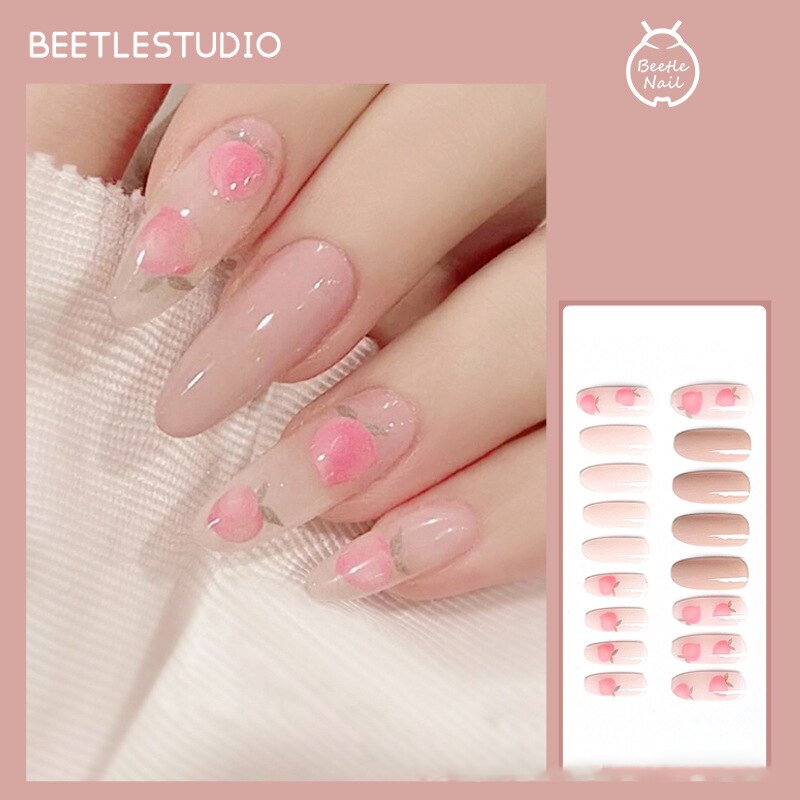 24pcs Peach Milks Tea Color Wear Long Paragraph Fashion Manicure Patch False Nails Save Time Wearable Nail Patch SANA889-Nail Inspo