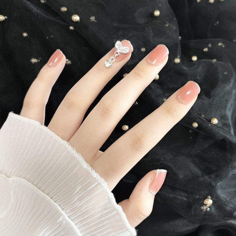 24pcs Pink False Nail Micro Clear Cute Fake Nails Press On Nail Long Nails With Rhinestones Summer Nail Art Decoration 515-1-Nail Inspo