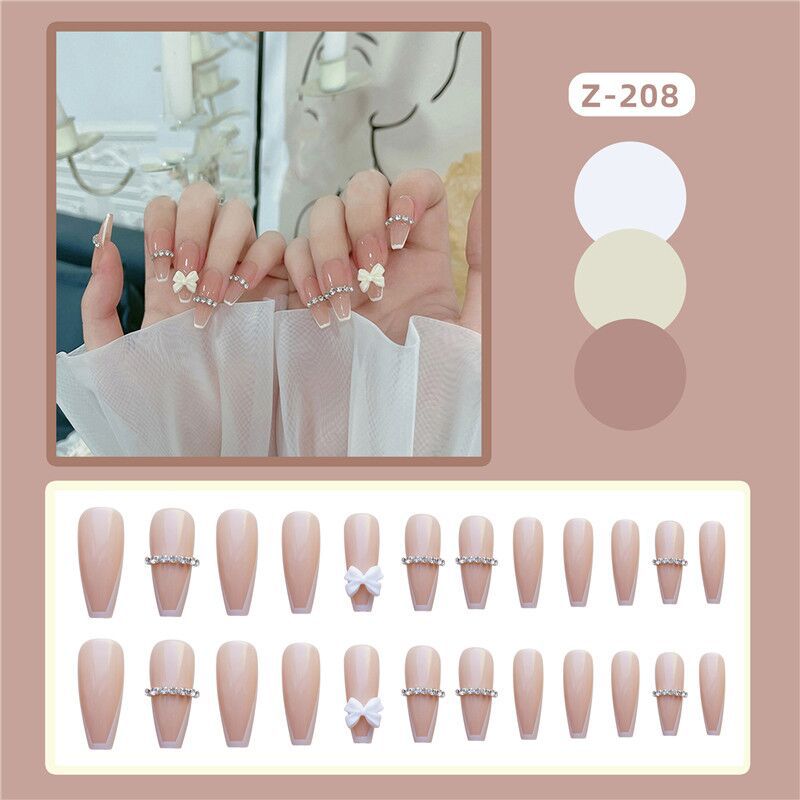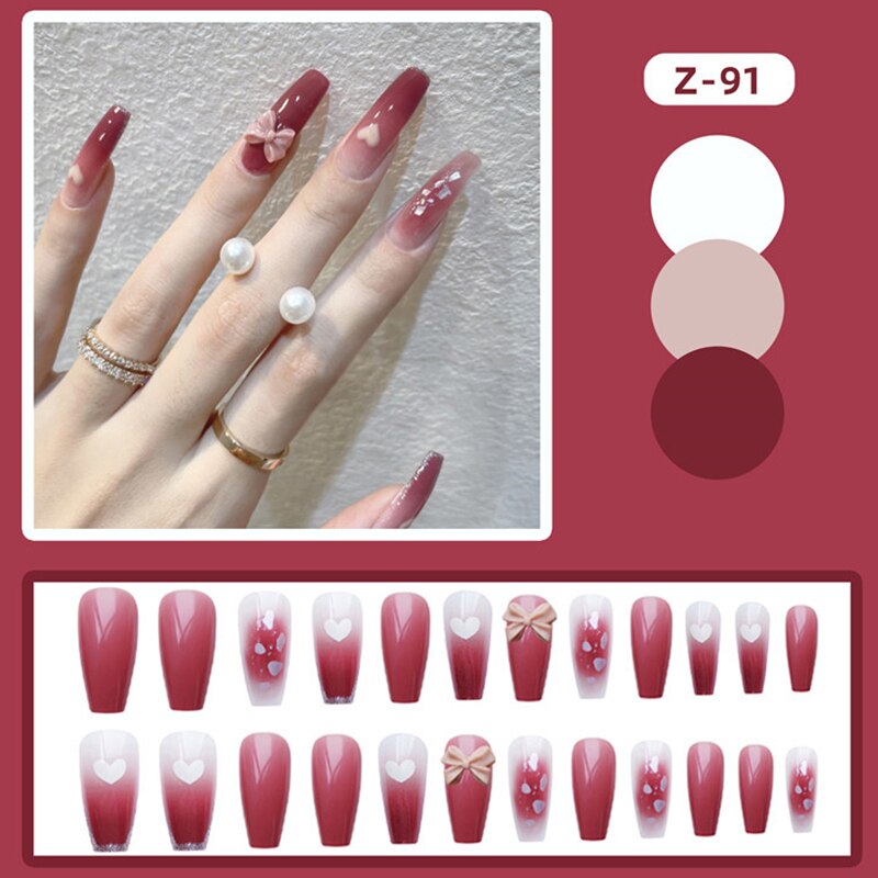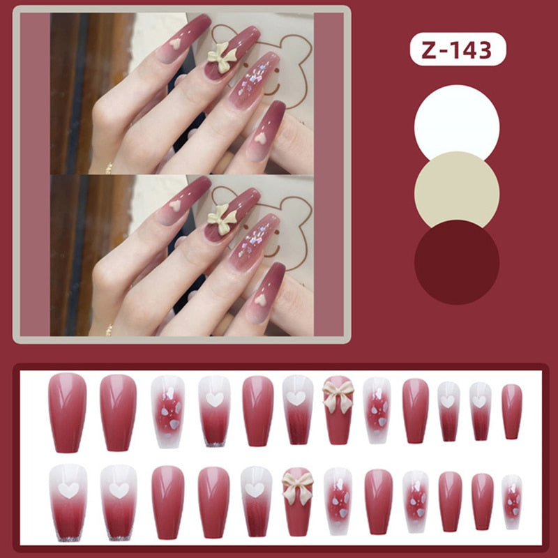 Looks cute on my nails. I had to adjust them according to my nail sizes. The glue fixed them tightly to the nail so far( the second day yet). I applied some top coat for extra shine.