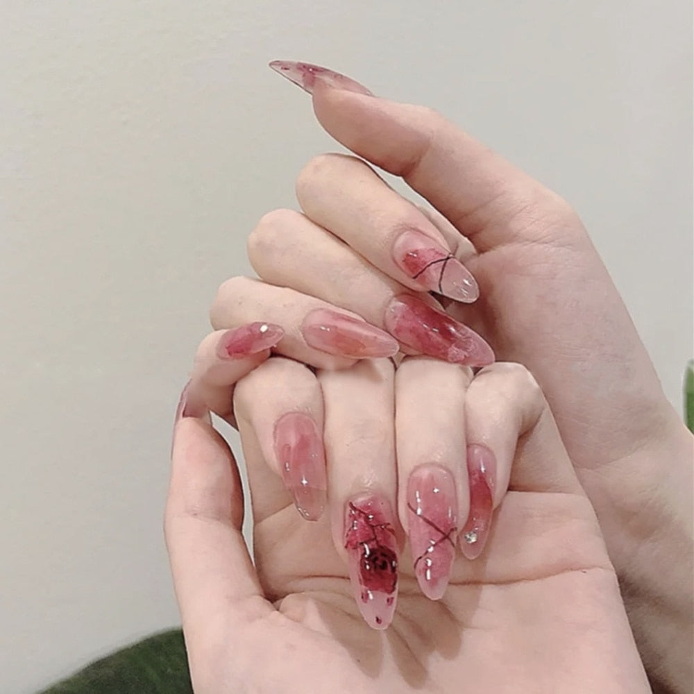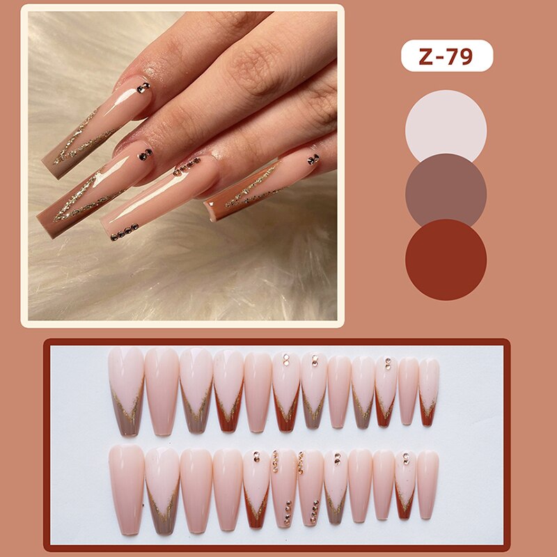 - Choose a suitable size of adhesive stickers or nail glue for your nails and stick it on your nails.