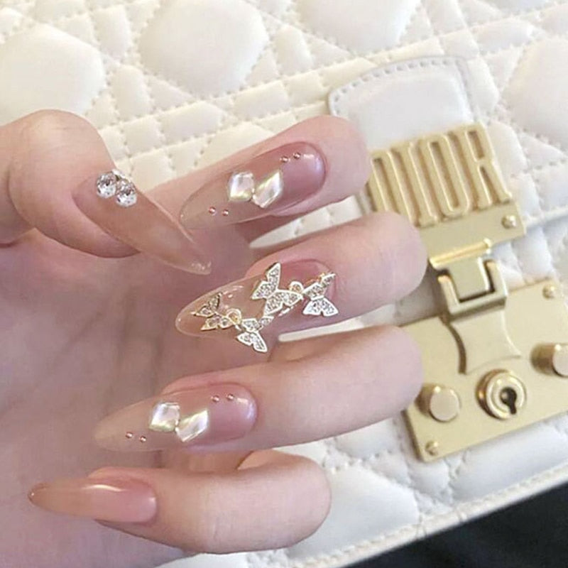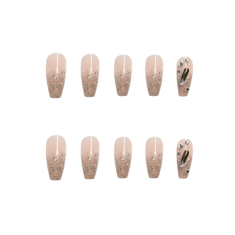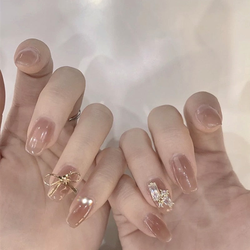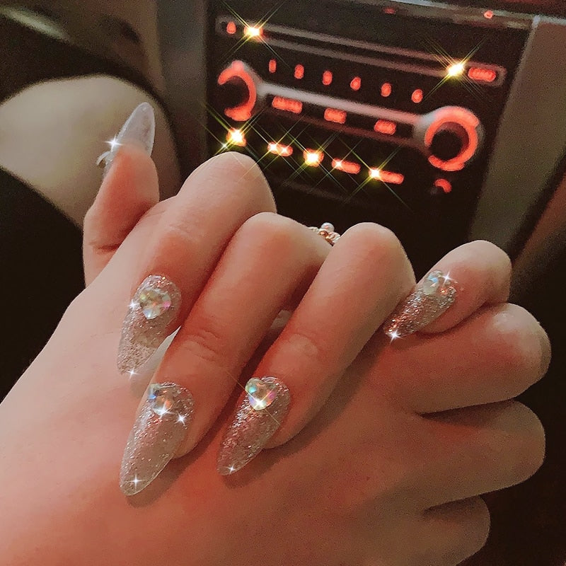 24pcs Rhinestone Design Fake Nails Shiny Bridal Women Lady party nail DIy Decorations Press On nail Tips False Nail Patch-Nail Inspo
