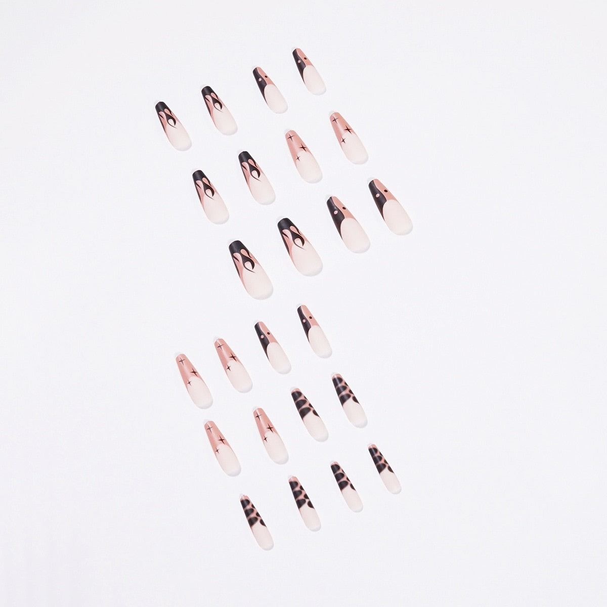 24Pcs/Set Black Flame Star Design False Nail French Full Cover Fake Nails Glue DIY Manicure Nail Art Tools-Nail Inspo