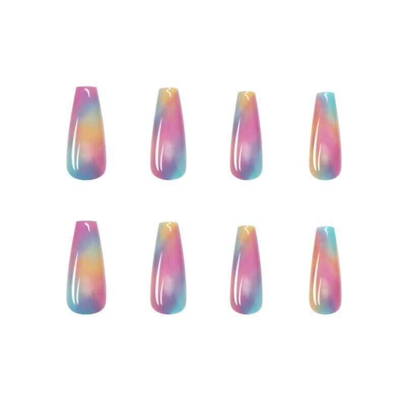 24pcs/Set Fake Nails Extra Long Rainbow Ballerina Fingernail DIY Acrylic Full Nail Decoration Art Tips False Nails with Glue-Nail Inspo