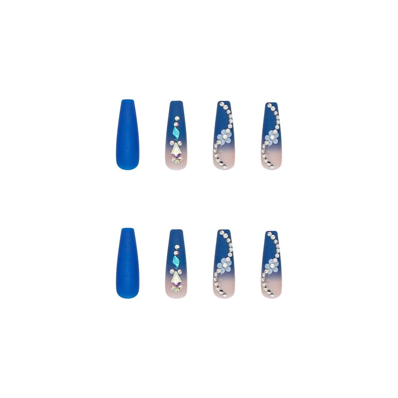 24pcs/Set False Nails Extra Long Blue Gradient Rhinestone Coffin Fake Nails Detachable Beauty Flower Ballerina Nail Art Tips-Nail Inspo