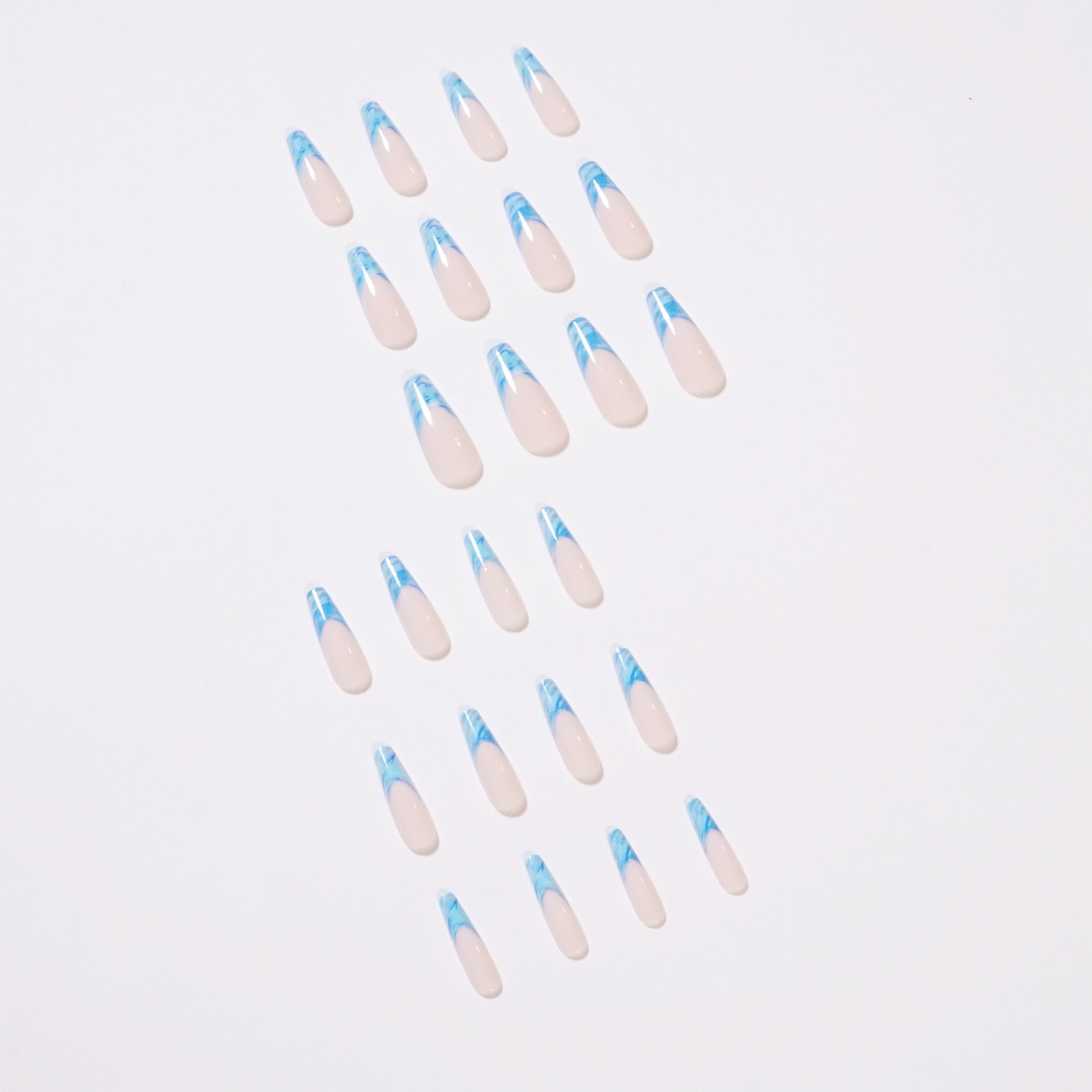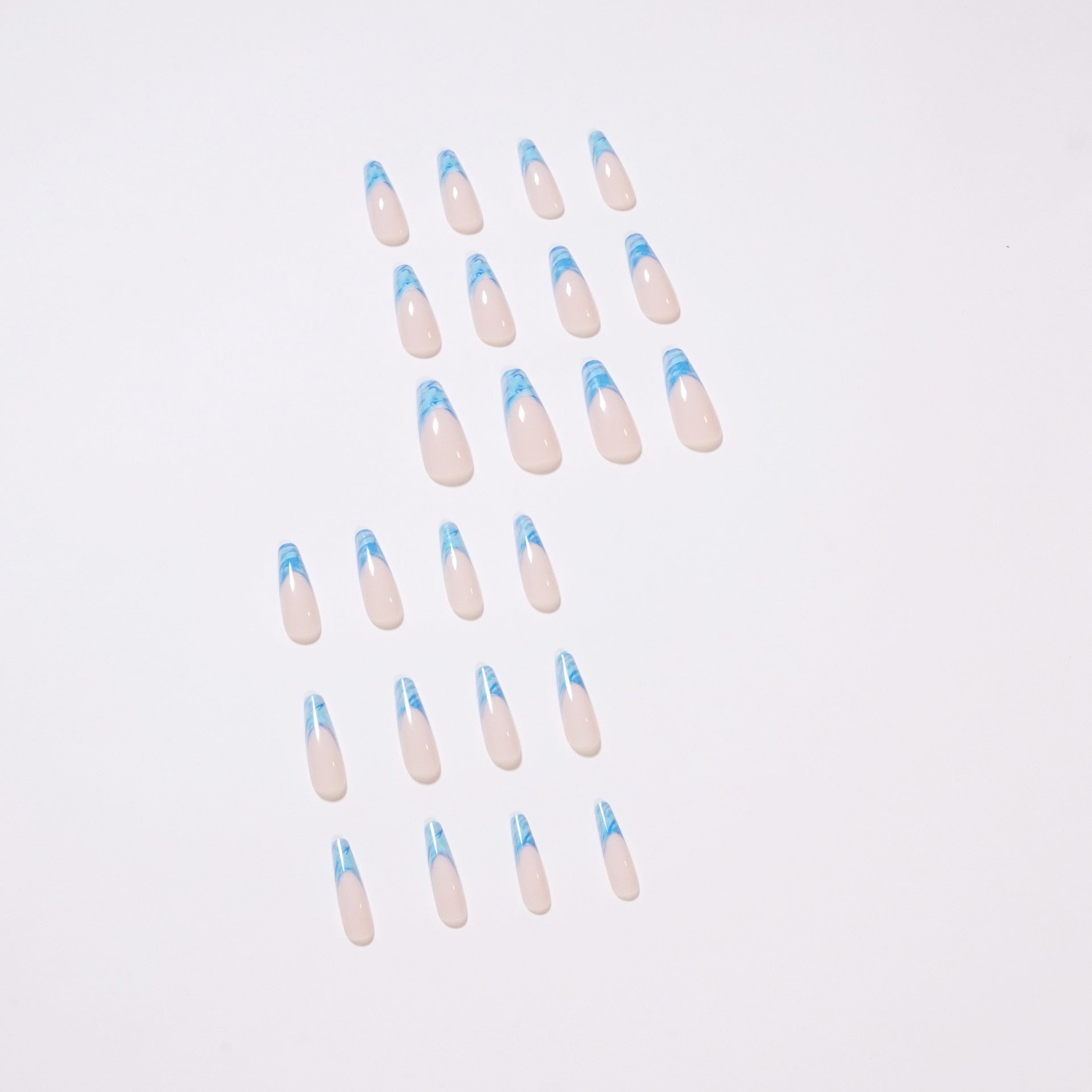 24Pcs/Set French Blue Waves Design False Nail French Full Cover Fake Nails Glue DIY Manicure Nail Art Tools-Nail Inspo