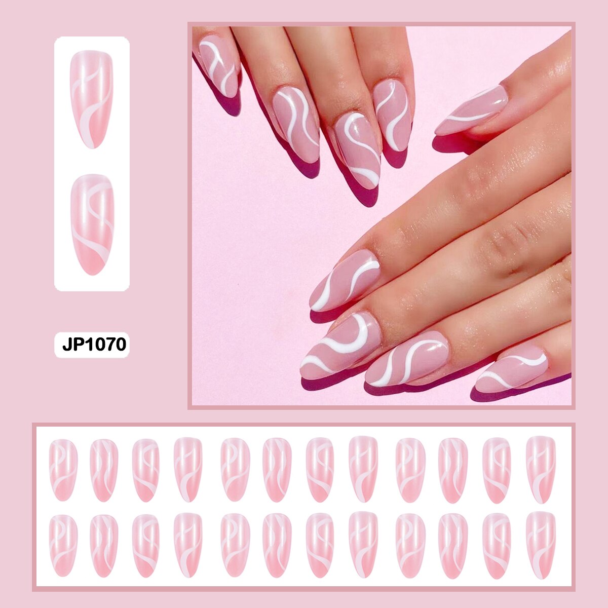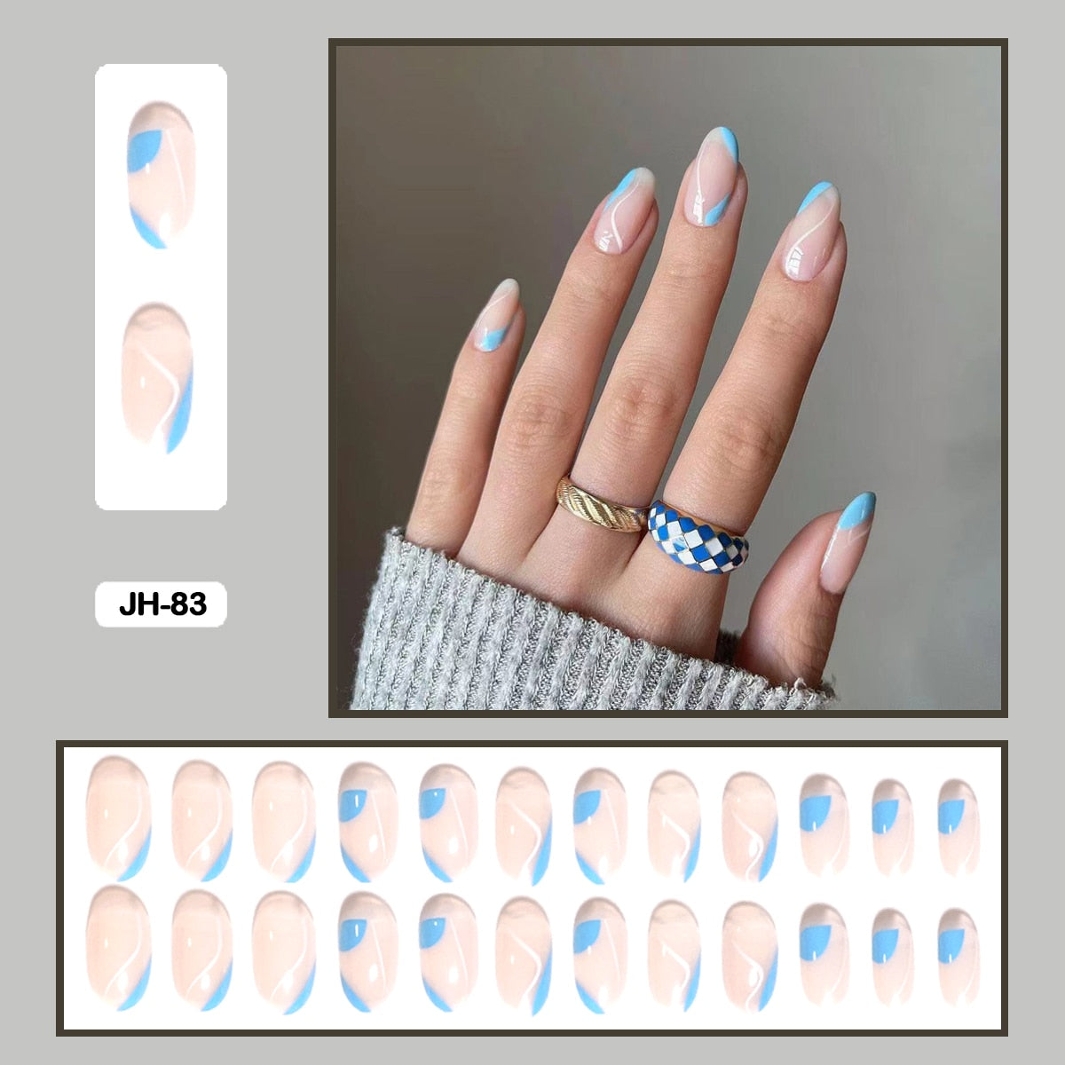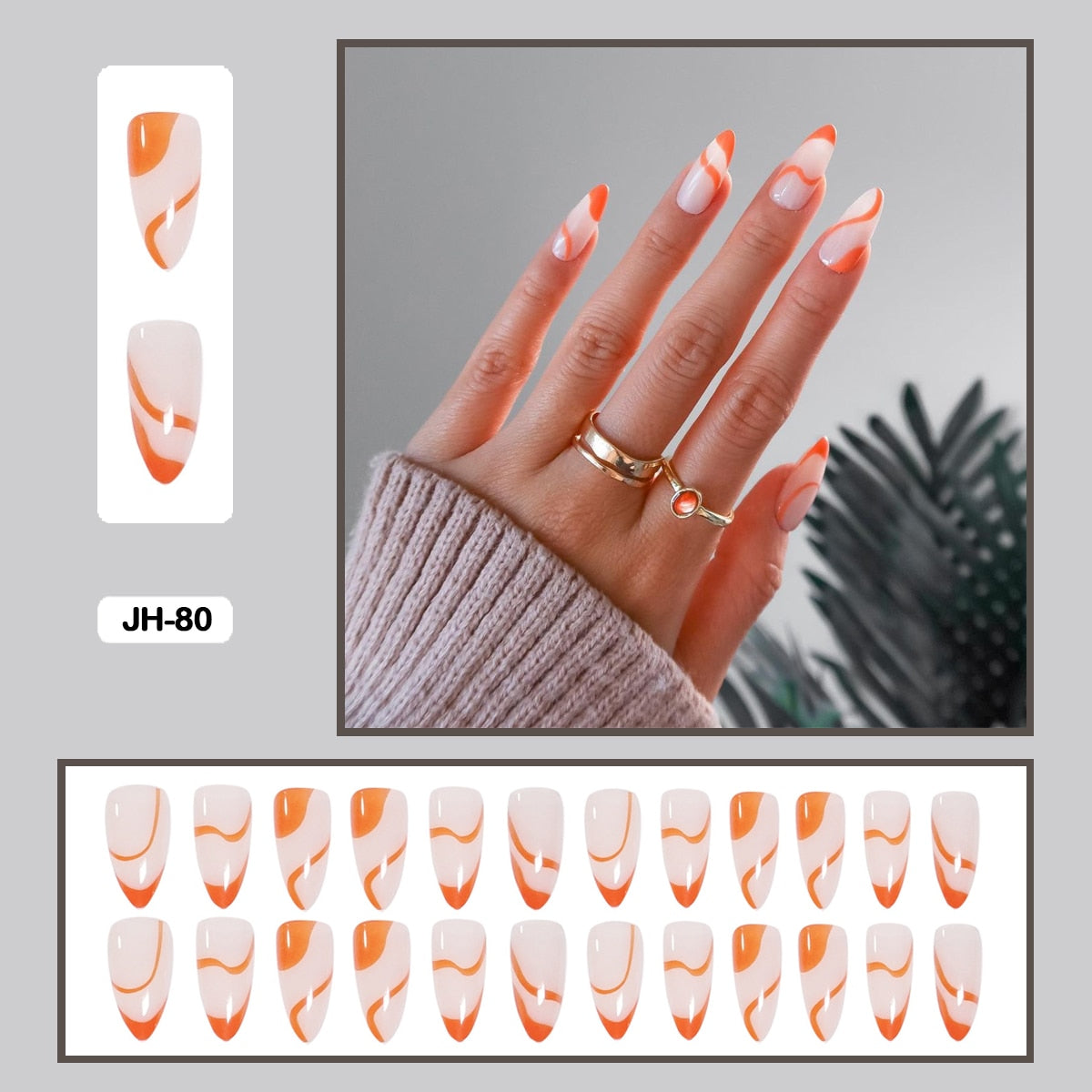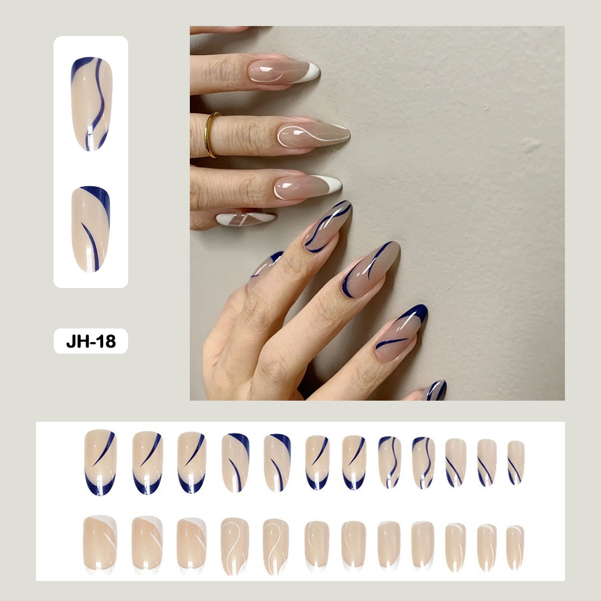 24Pcs/Set French Contracted Artistic Line Drip Shaped Short Wearable False Nails With Glue Manicure Art Tools Fake Nails-Nail Inspo