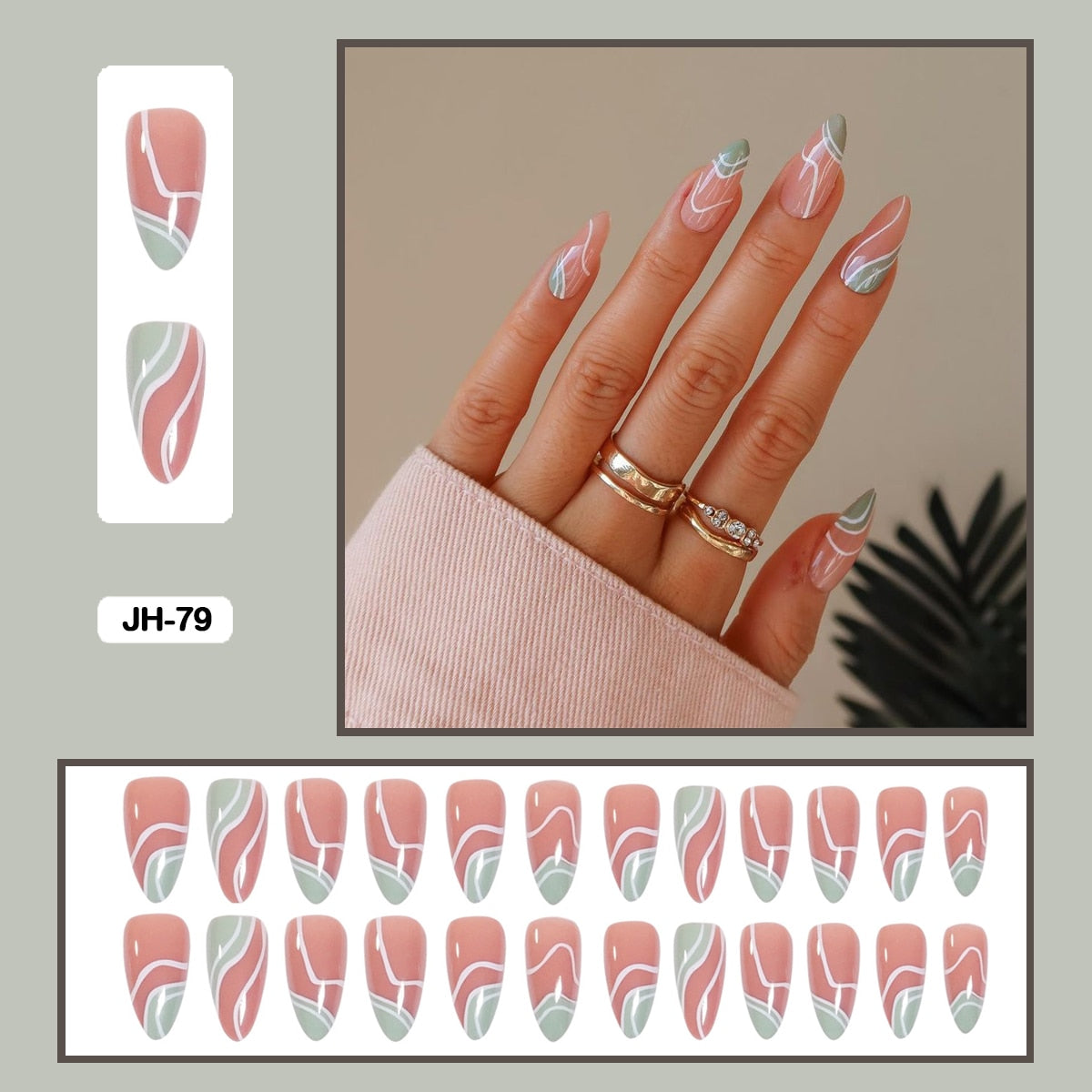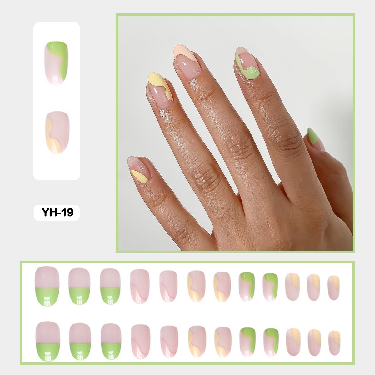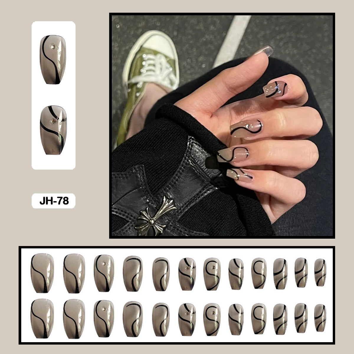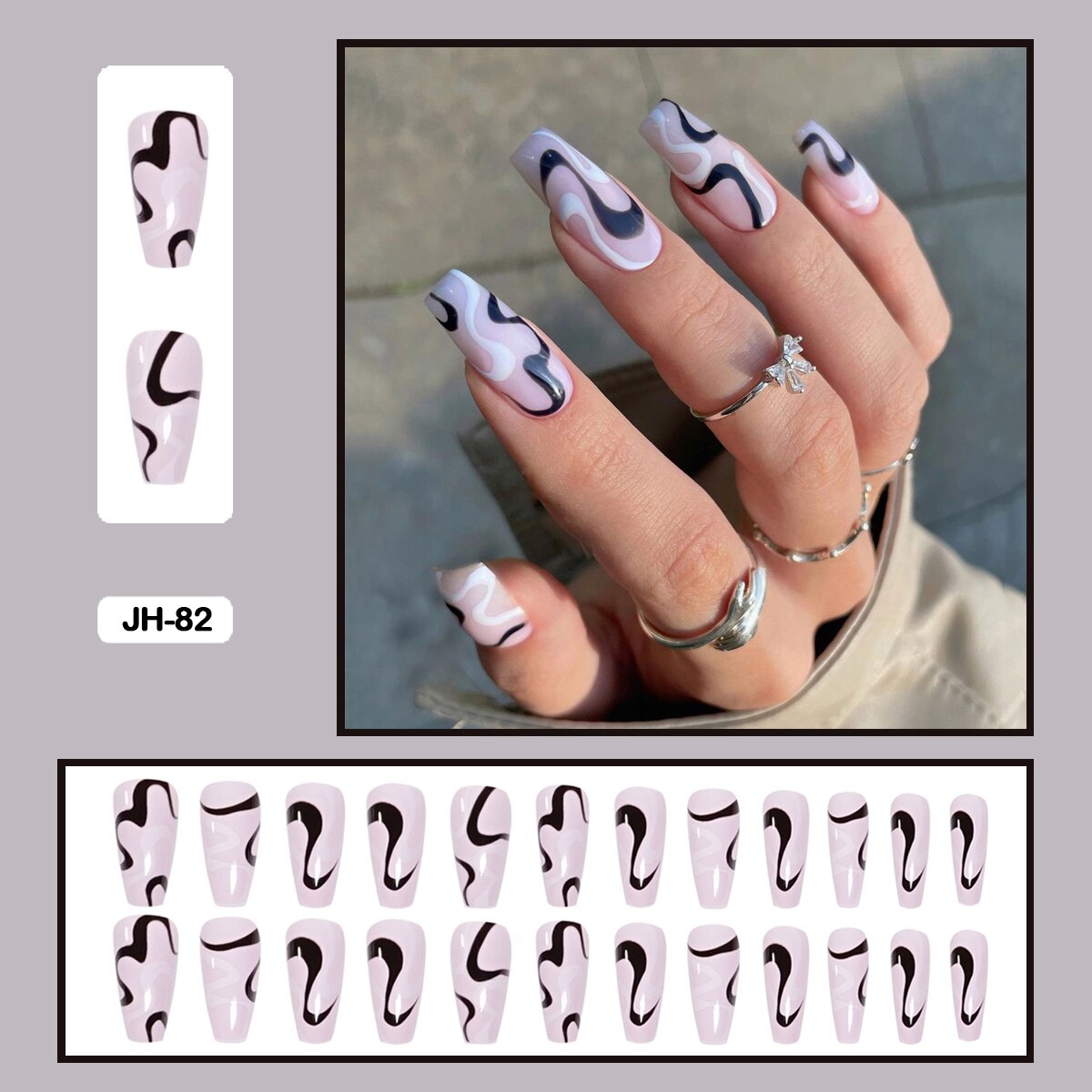 24Pcs/Set French Contracted Artistic Line Drip Shaped Short Wearable False Nails With Glue Manicure Art Tools Fake Nails-Nail Inspo