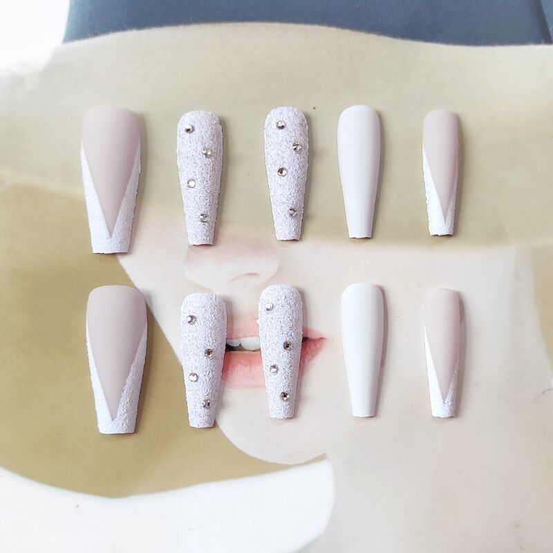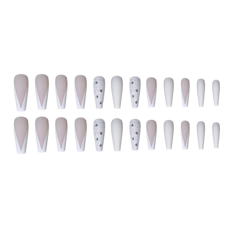 24pcs/Set French Fake Nails Extra Long Rhinestone Decal V Shaped Matte False Nails with Glue Acrylic Ballet Nail Makeup Tips-Nail Inspo
