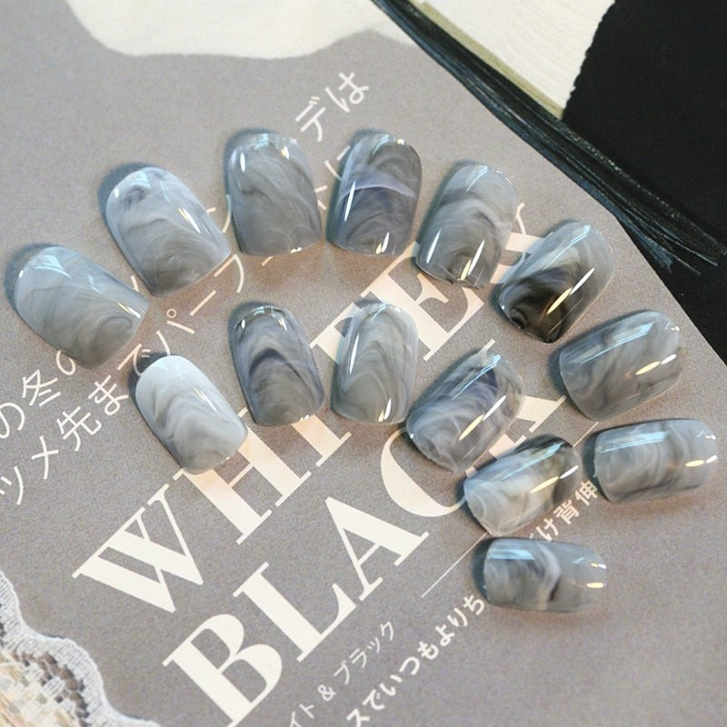 24Pcs/Set Grey Marble Design Lady Nails Acrylic Full False Nail Tips Nail Art Fake Nails Tools + Duo Side Sticker Z141-Nail Inspo