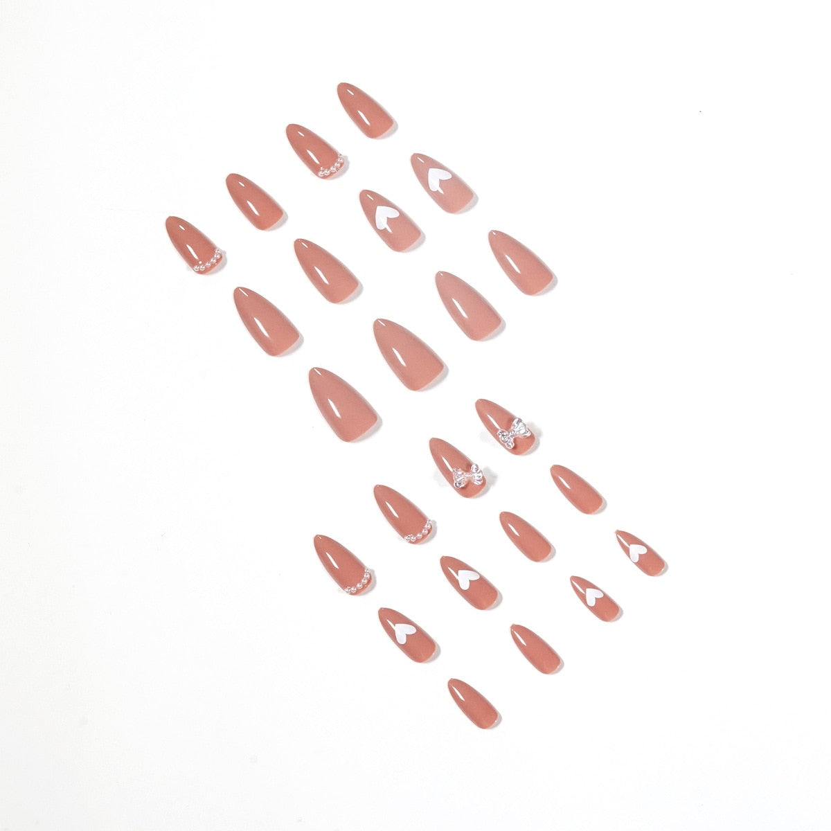 24Pcs/Set Heart Butterfly Pointy Temperament Design False Nail French Full Cover Fake Nails Glue DIY Manicure Nail Art Tools-Nail Inspo