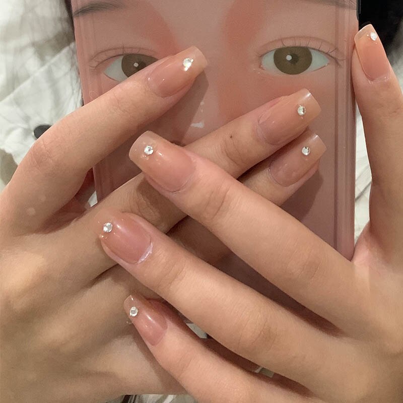 - Choose a suitable size of adhesive stickers or nail glue for your nails and stick it on your nails.