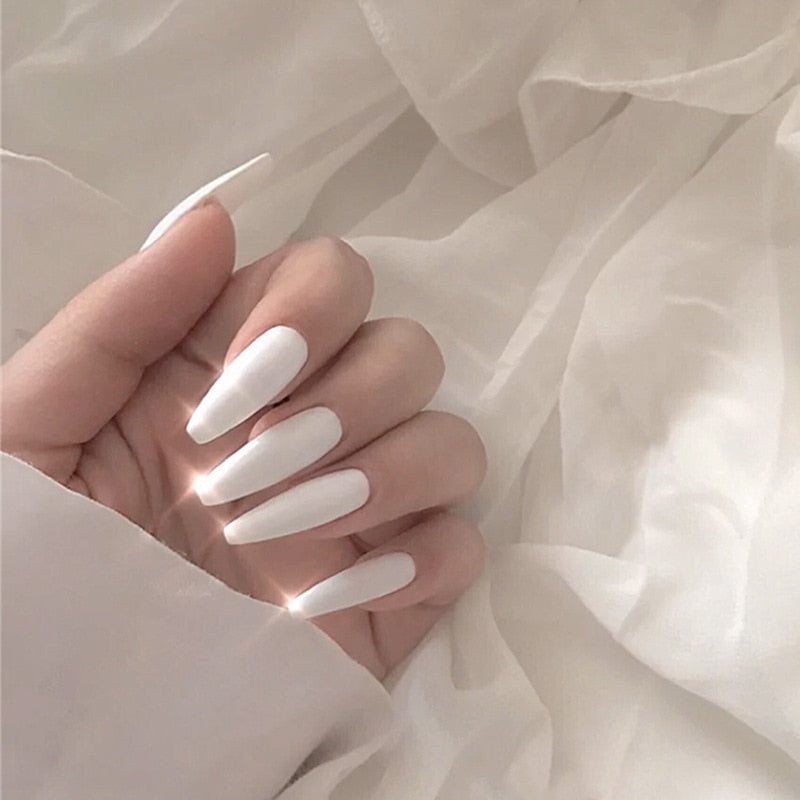 24pcs/Set Long Coffin Fake Nails European White Black Nail Decoration Ballerina Full Nail Art Tips Artificial Press on Nails-Nail Inspo