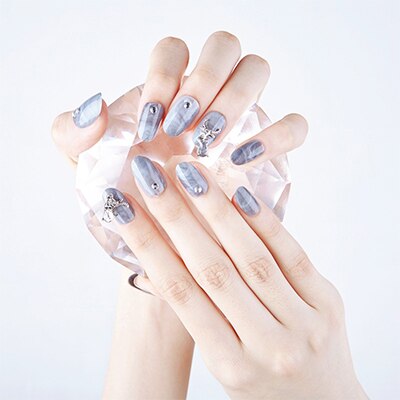 - Choose a suitable size of adhesive stickers or nail glue for your nails and stick it on your nails.