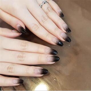 24pcs/Set Middle Long Black Gradient False Nails Pre-design Round Head Nail Art Decoration Fake Beauty Nail Tools with Glue-Nail Inspo