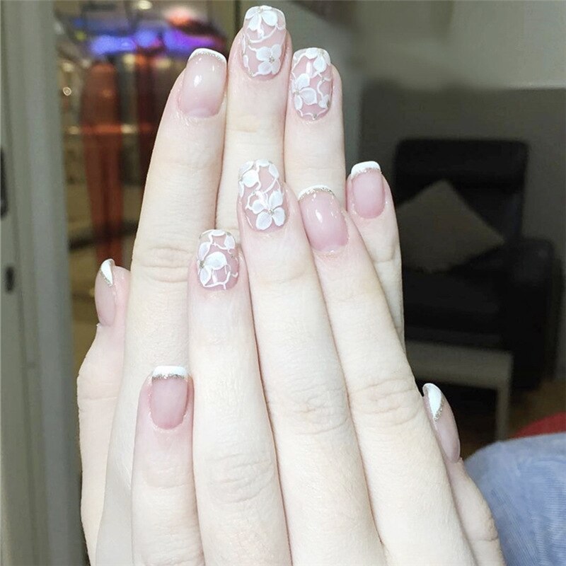 - Choose a suitable size of adhesive stickers or nail glue for your nails and stick it on your nails.