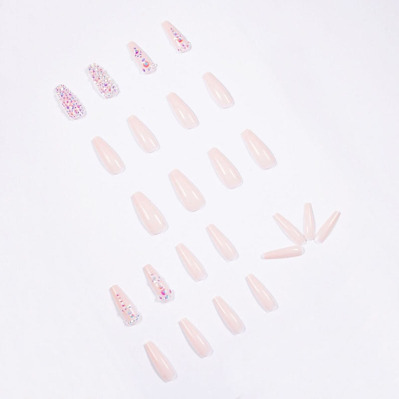 24pcs/Set Nude Pink False Nails Long Rhinestone Decal Wedding Bride Artificial Ballerina Nails Art Tips Press on Nails with Glue-Nail Inspo