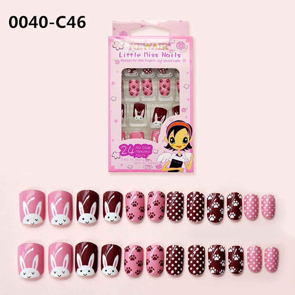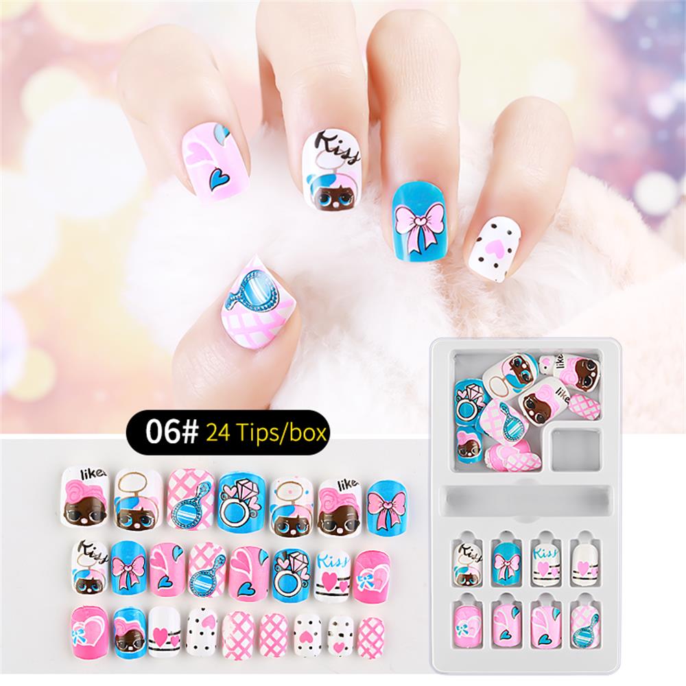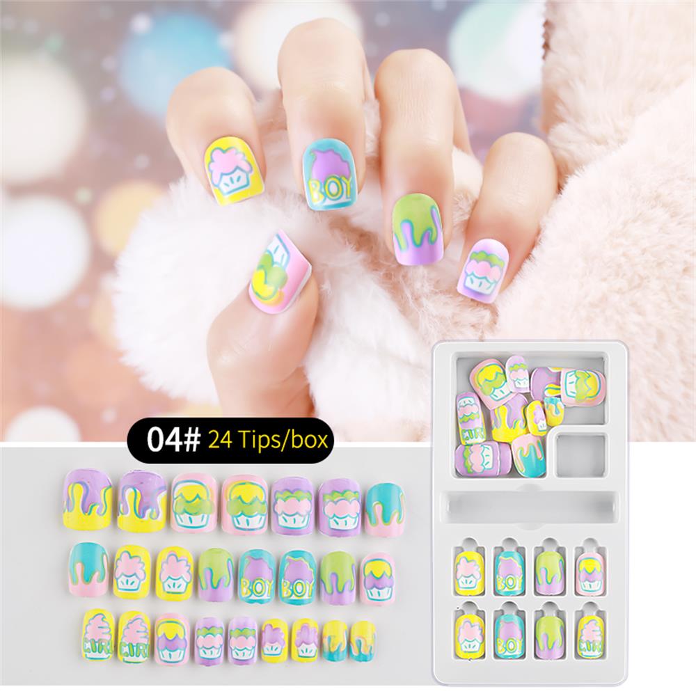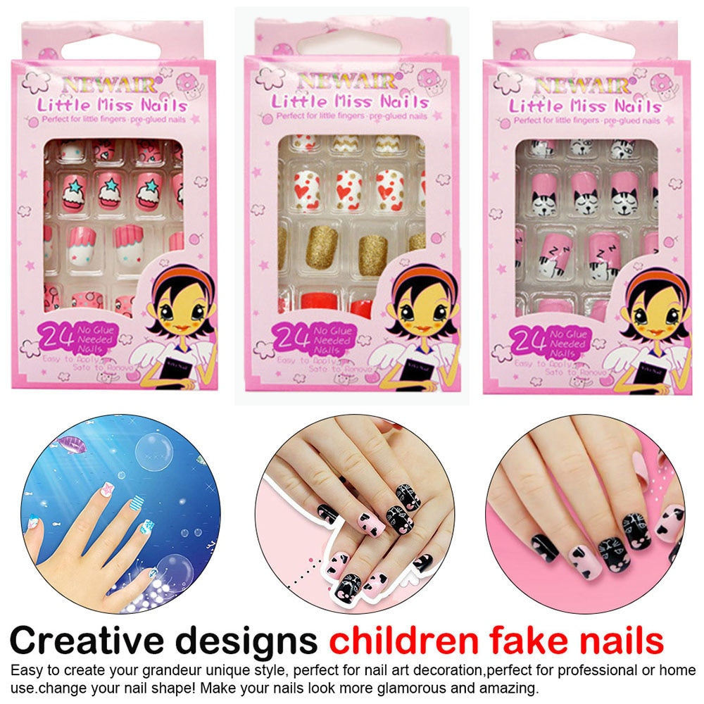 24Pcs/Set Press on Children Candy False Nail Tips Cartoon Full Cover Kid Pink Fake Nail Art for Little Girls Manicure Tool-Nail Inspo