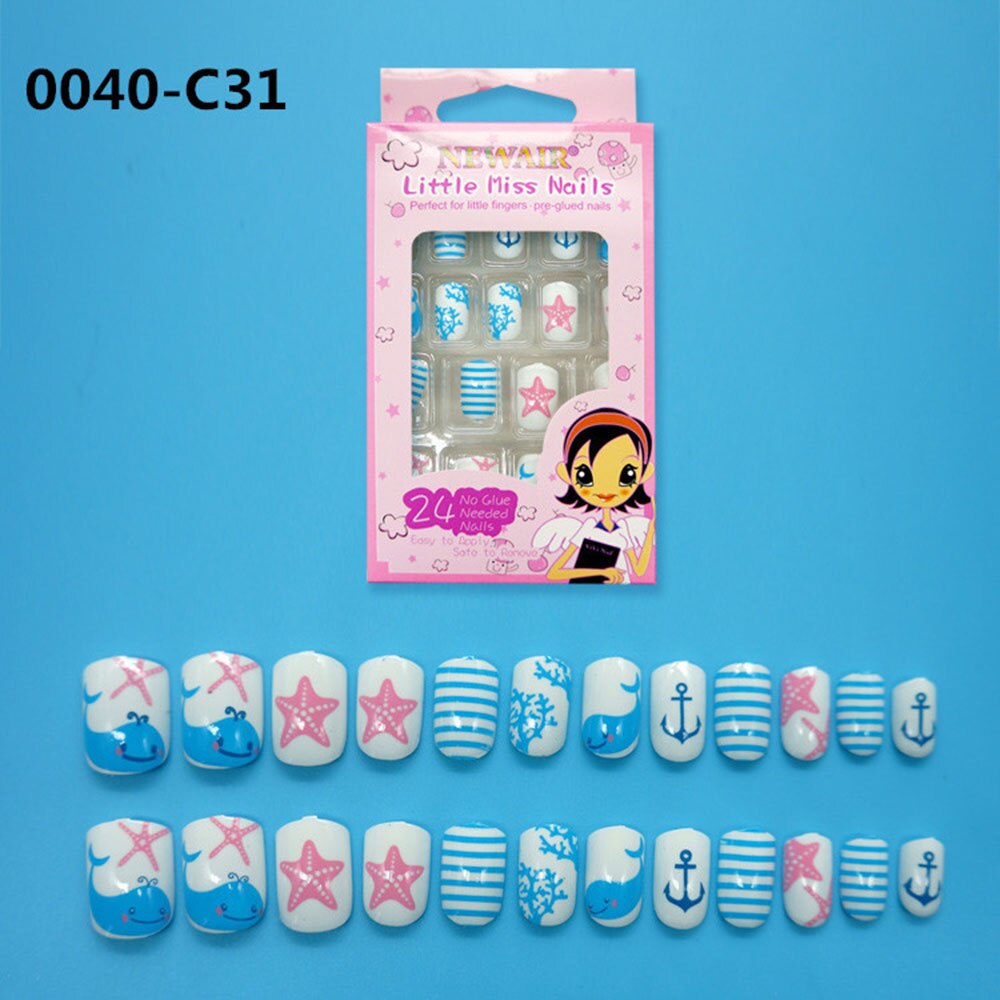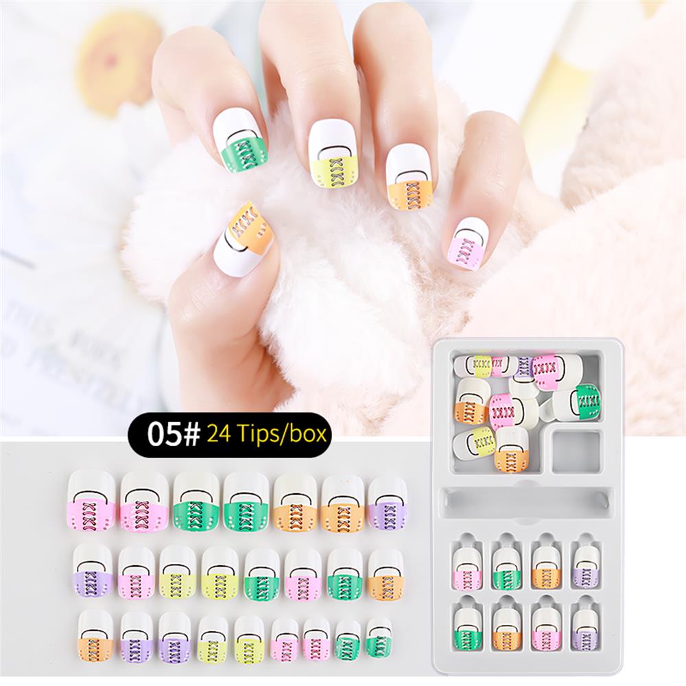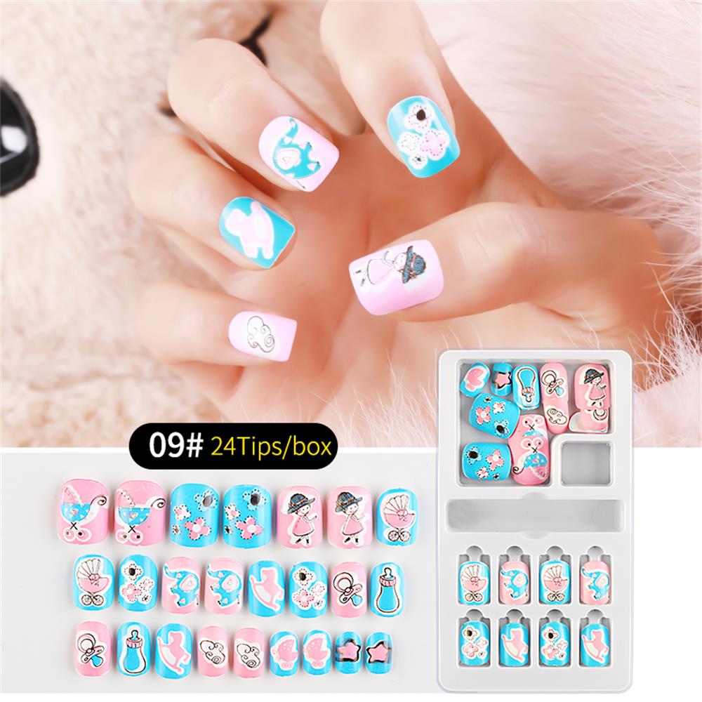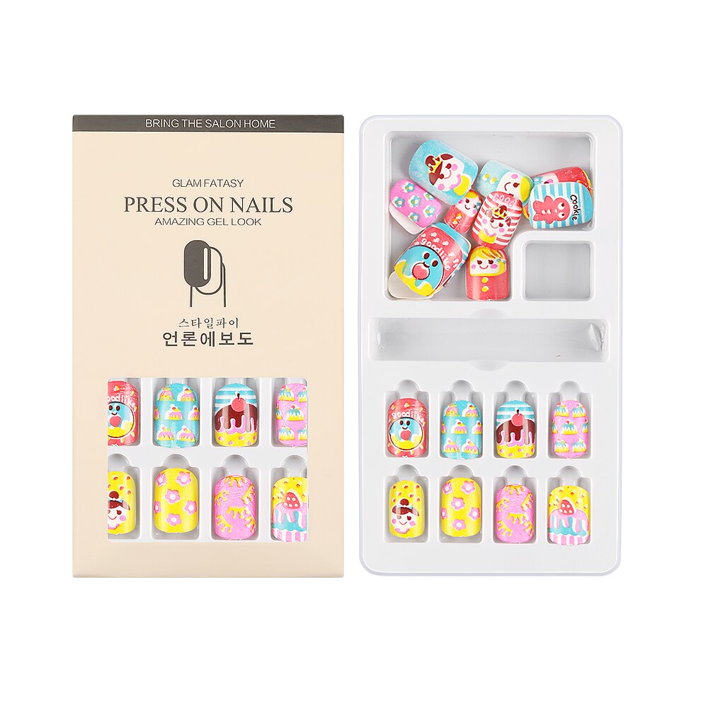 24Pcs/Set Press on Children Candy False Nail Tips Cartoon Full Cover Kid Pink Fake Nail Art for Little Girls Manicure Tool-Nail Inspo