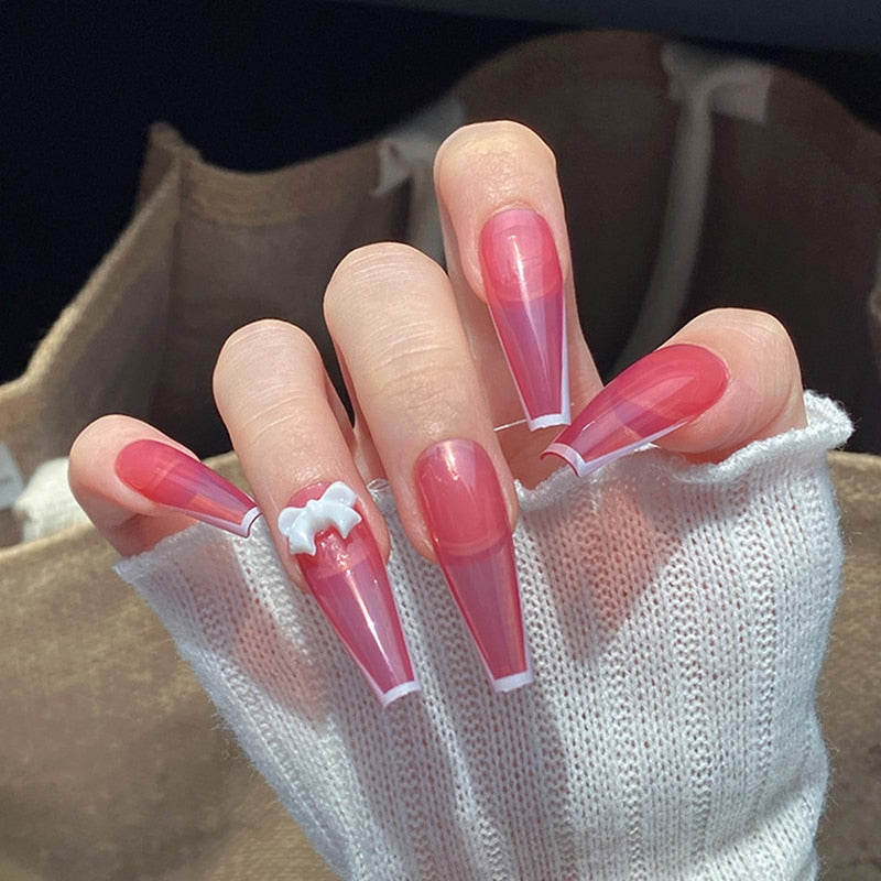 - Choose a suitable size of adhesive stickers or nail glue for your nails and stick it on your nails.