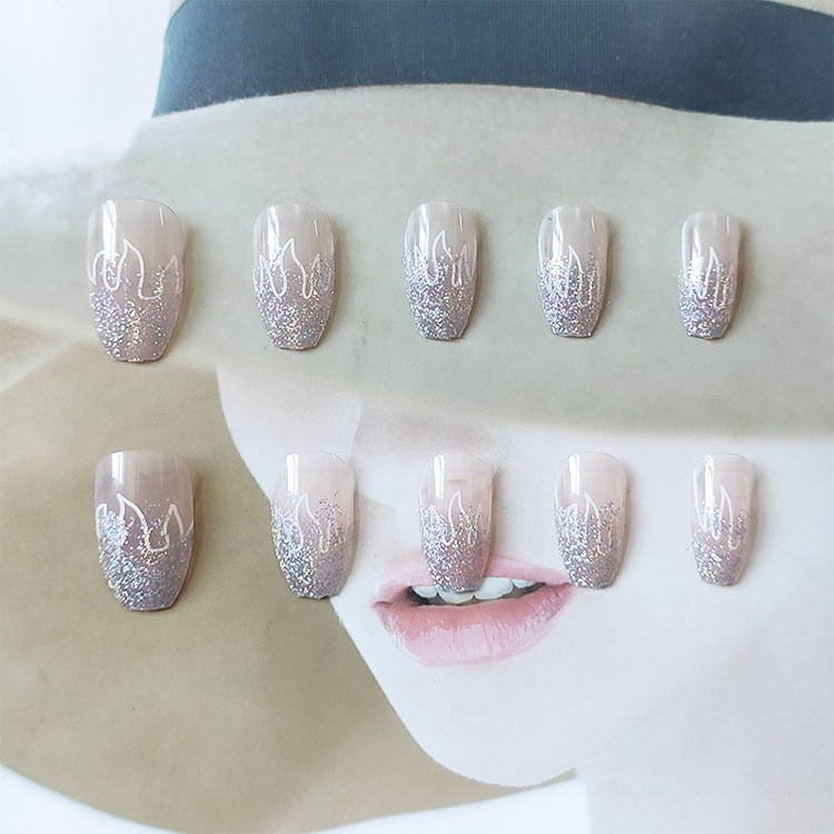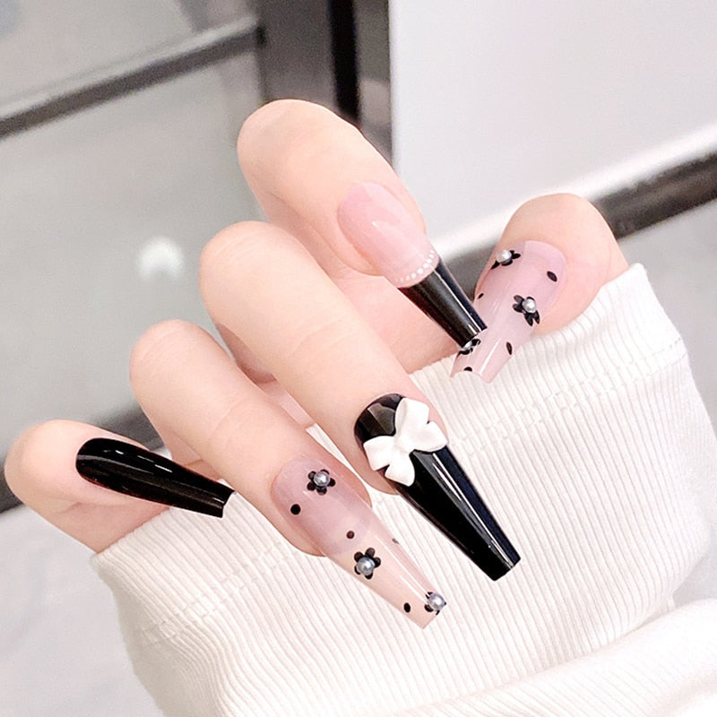 24pcs/set Press on Nail Tips Acrylic 10 Sizes Flower Design Fake Nails Art Full Cover French False Nail Art Tips Artifical Nails-Nail Inspo