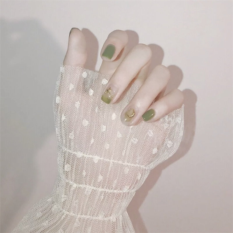 Looks cute on my nails. I had to adjust them according to my nail sizes. The glue fixed them tightly to the nail so far( the second day yet). I applied some top coat for extra shine.