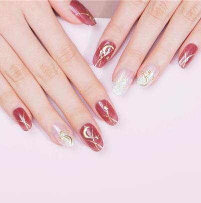 - Choose a suitable size of adhesive stickers or nail glue for your nails and stick it on your nails.