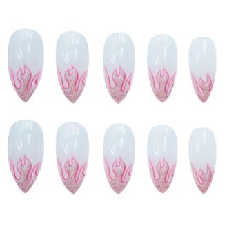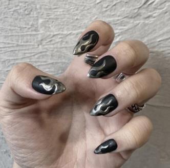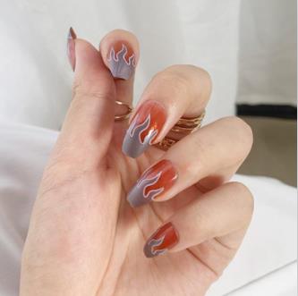 24pcs/Set Punk Fake Nails Short Design Fire Pattern False Nails Girls Finished Full Nail Decal Beauty Artificial Nail Art Tips-Nail Inspo
